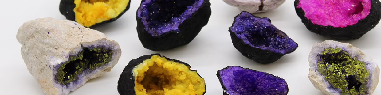 Entdecken Sie die farbenfrohen Calcit-Geoden von LINE NATURA!