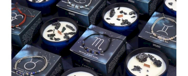 Rufen Sie die Energie des Tierkreises in Ihre Realität mit unseren exklusiven Kristallkerzen und ätherischen Tierkreisölen