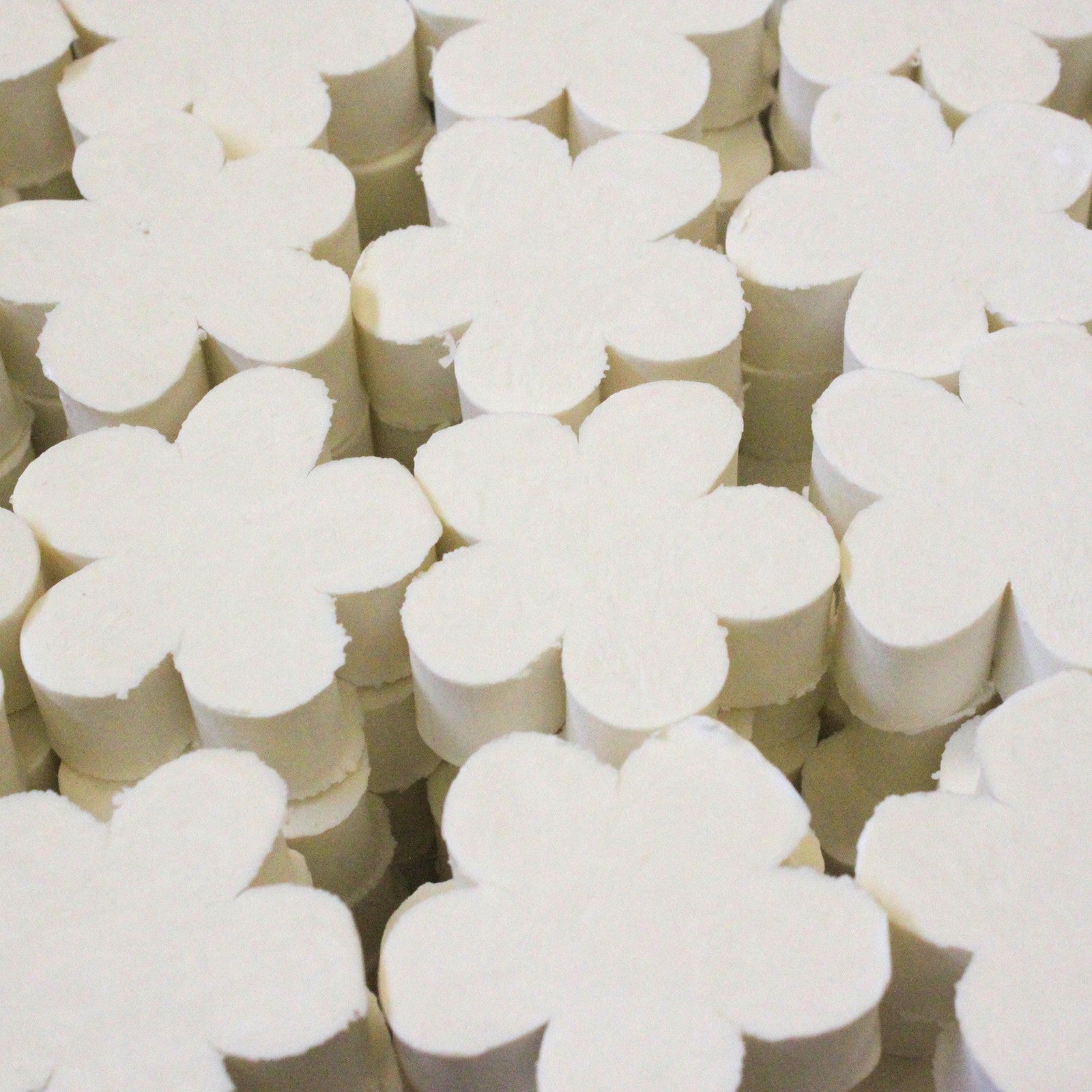 Unsere handgemachten Gästeseifen in Blumenform sind ein wunderschöner Blickfang. Sie sind farbenfroh und duften wunderbar, frisch und lecker.