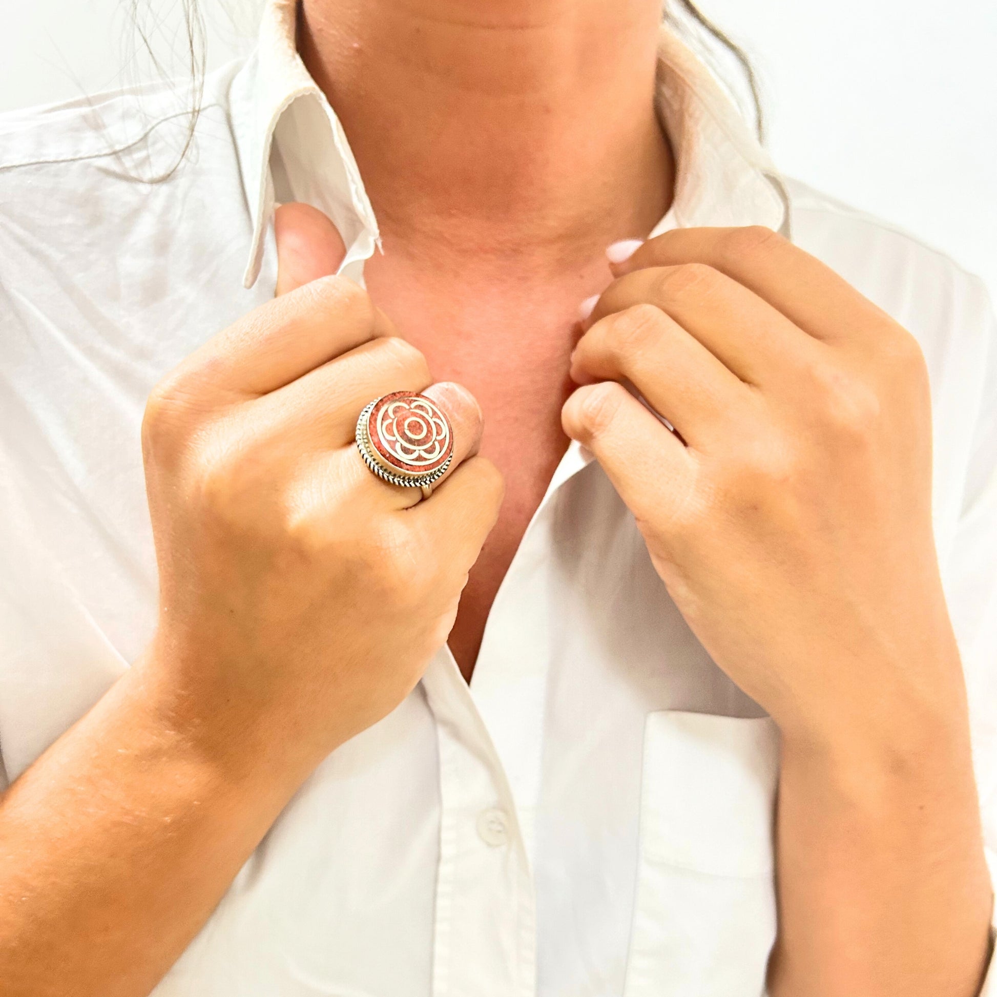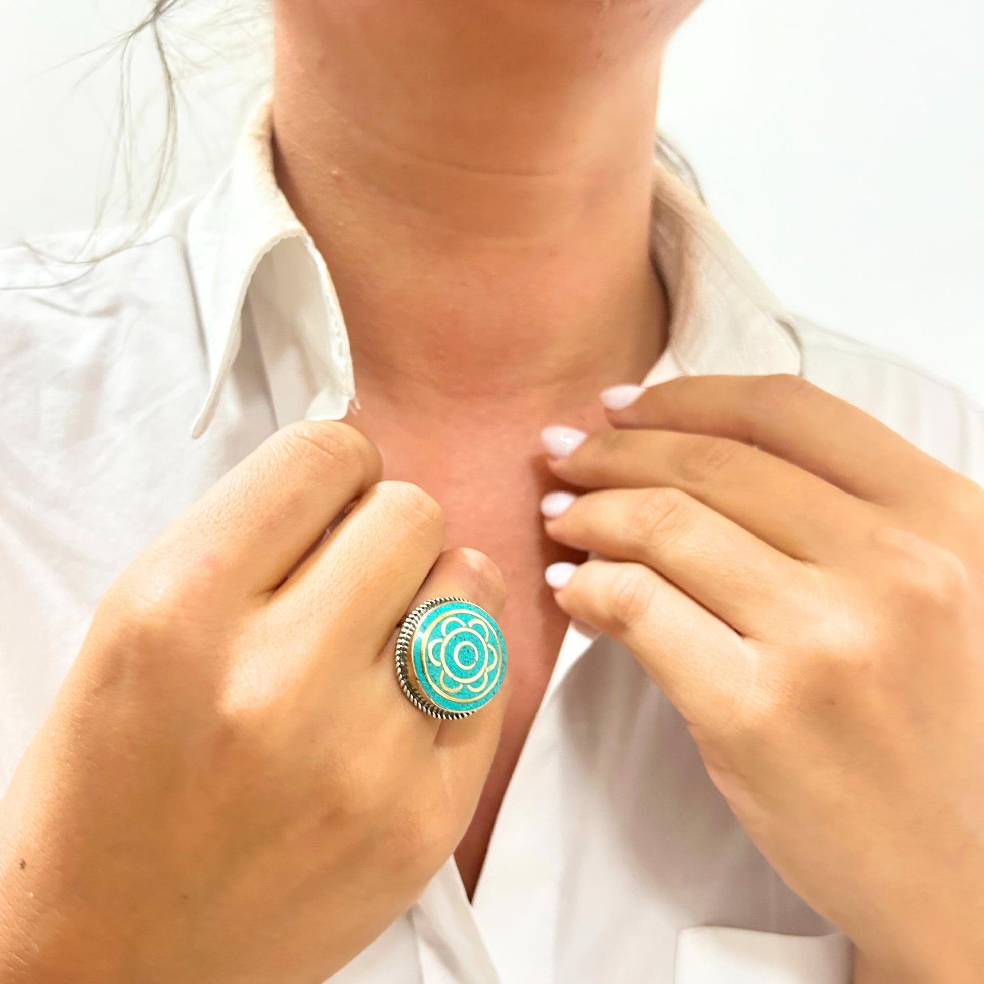 Verleihen Sie Ihrem Stil mit den vier runden Ringen im nepalesischen Stil (4 Farben) eine exotische und farbenfrohe Note. Inspiriert von der reichen Kultur und lebendigen Kunst Nepals sind diese Ringe in vier verschiedenen Farben erhältlich, sodass Sie sie mit verschiedenen Outfits kombinieren oder mit Ihren Freunden teilen können. Jeder Ring wurde sorgfältig gefertigt und spiegelt eine einzigartige Ästhetik wider, die sowohl die traditionelle Essenz als auch einen Hauch von Modernität einfängt.