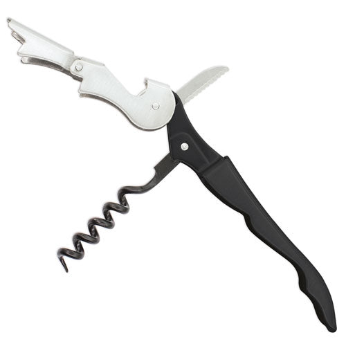 Doppelhebel-Korkenzieher der neuen Generation für sanftes und einfaches Korkenziehen. Inklusive praktischem Flaschenöffner mit ergonomischem, farbigem Griff.