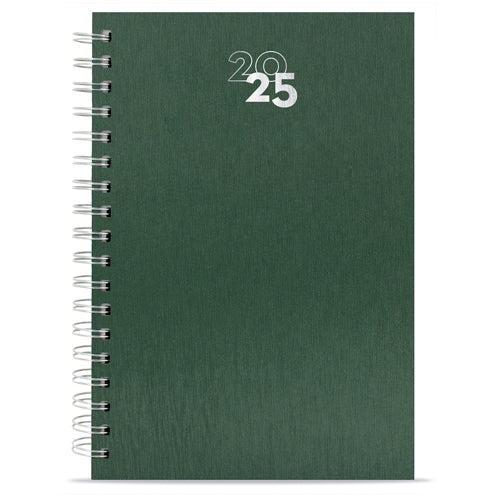Vernickelter Ringbuchkalender mit gestreiftem Aluminium-Effekt und stabilem, metallicfarbenem Einband. 176 mikroperforierte Seiten mit tagesgenauem Jahresbericht, nationalen und internationalen Feiertagen, Sprachen, einem Dreijahreskalender, Adressen und Telefonnummern wichtiger Termine, Namenstage und einer ausklappbaren politischen Europakarte. Monats- und Wochentagsangaben in Spanisch, Portugiesisch, Französisch, Englisch, Deutsch, Italienisch, Baskisch, Katalanisch und Galizisch. Erhältlich in zwei Größen: Art. Z-823, 16 x 21,5 cm, und Art. Z-824, 19 x 25 cm. Enthält 352 Blätter.
