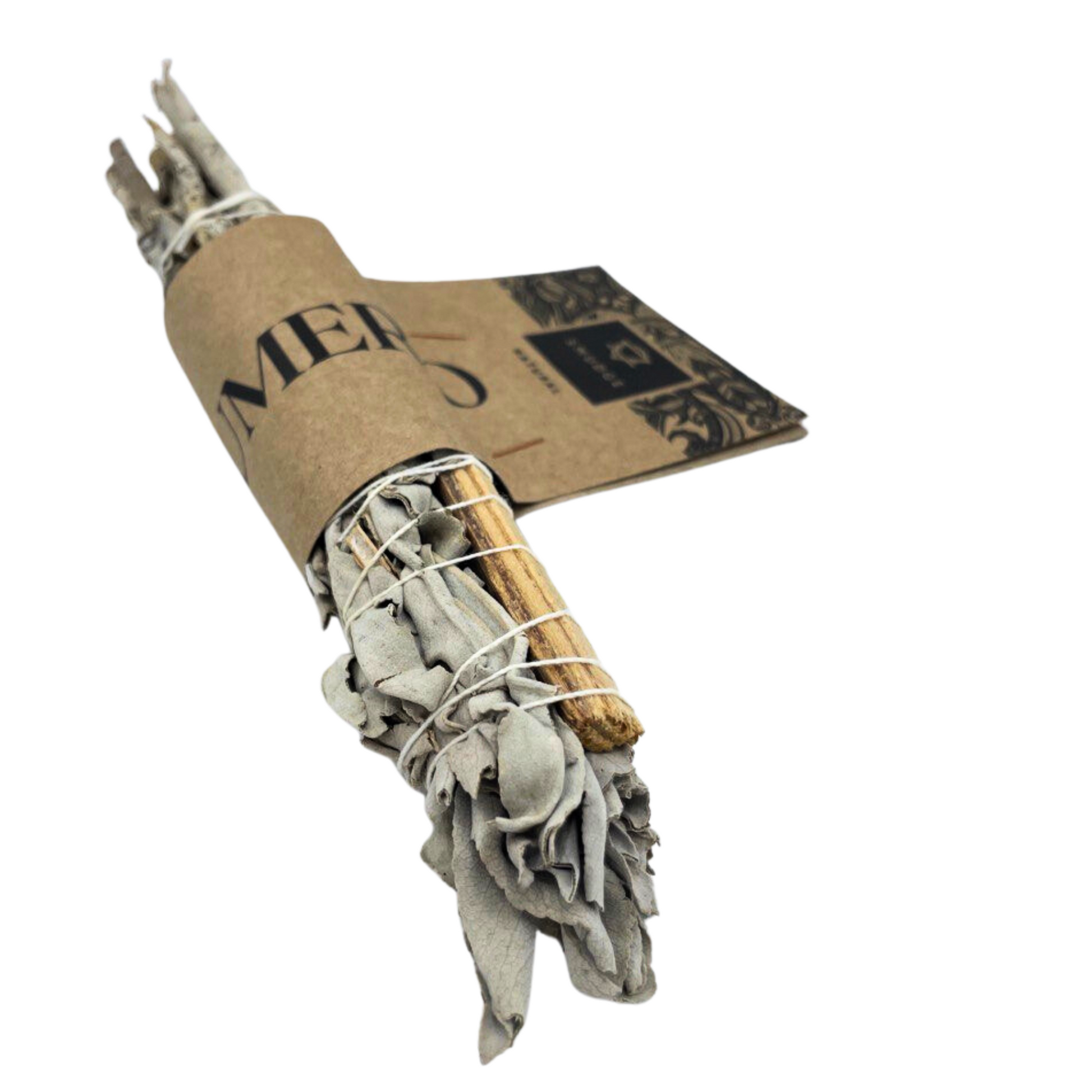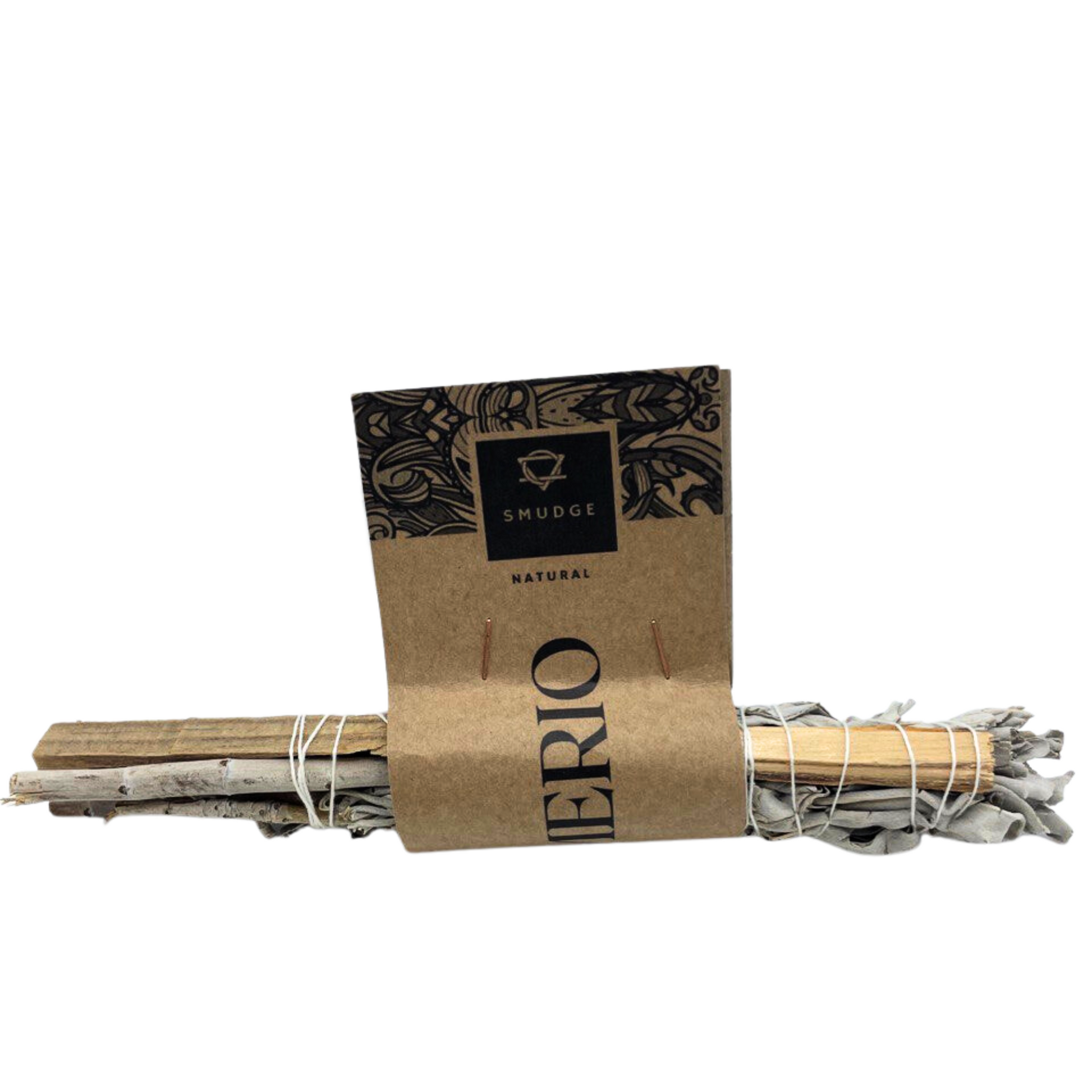 - Combina salvia blanca, conocida por limpiar el ambiente de energías negativas, y palo mexicano, que atrae paz y claridad mental