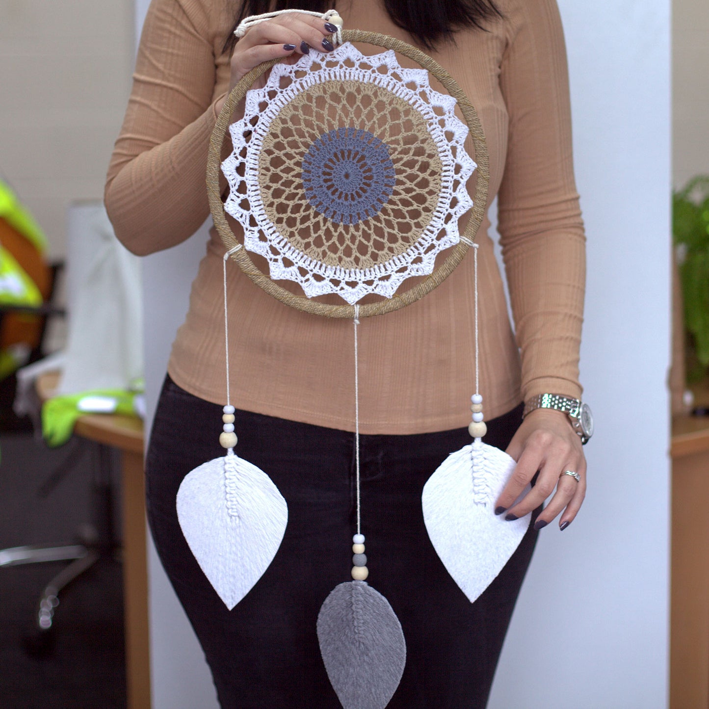 Der Traumfänger – Mittelbraune Elemente ist das ideale Geschenk für alle, die die Geschichten und Traditionen hinter Objekten schätzen oder einfach ihr Zuhause mit Details verschönern möchten, die die Sprache des Herzens sprechen. Machen Sie ihn zum Wächter Ihrer Träume und zum Symbol Ihres einzigartigen Stils in Ihrer Einrichtung.