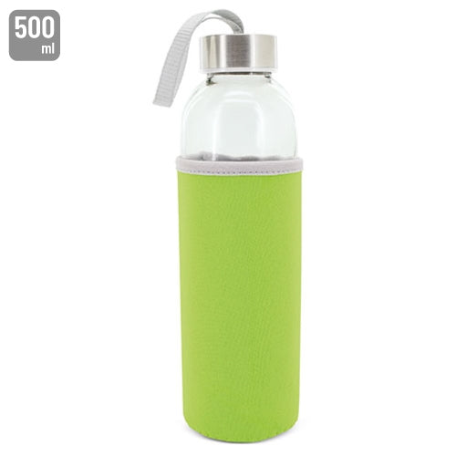 - • Glaswasserflasche mit abnehmbarer, rutschfester Neoprenhülle