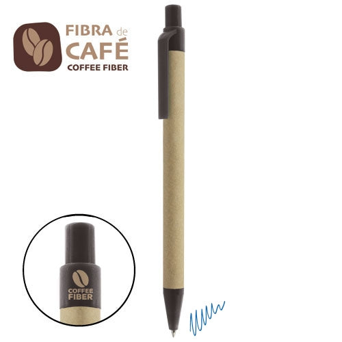 Stift aus recyceltem Karton und brauner Faser, einem abbaubaren und langlebigen Material aus Kaffeesatz, was zu einem nachhaltigeren Produkt führt. Blaue Schrift