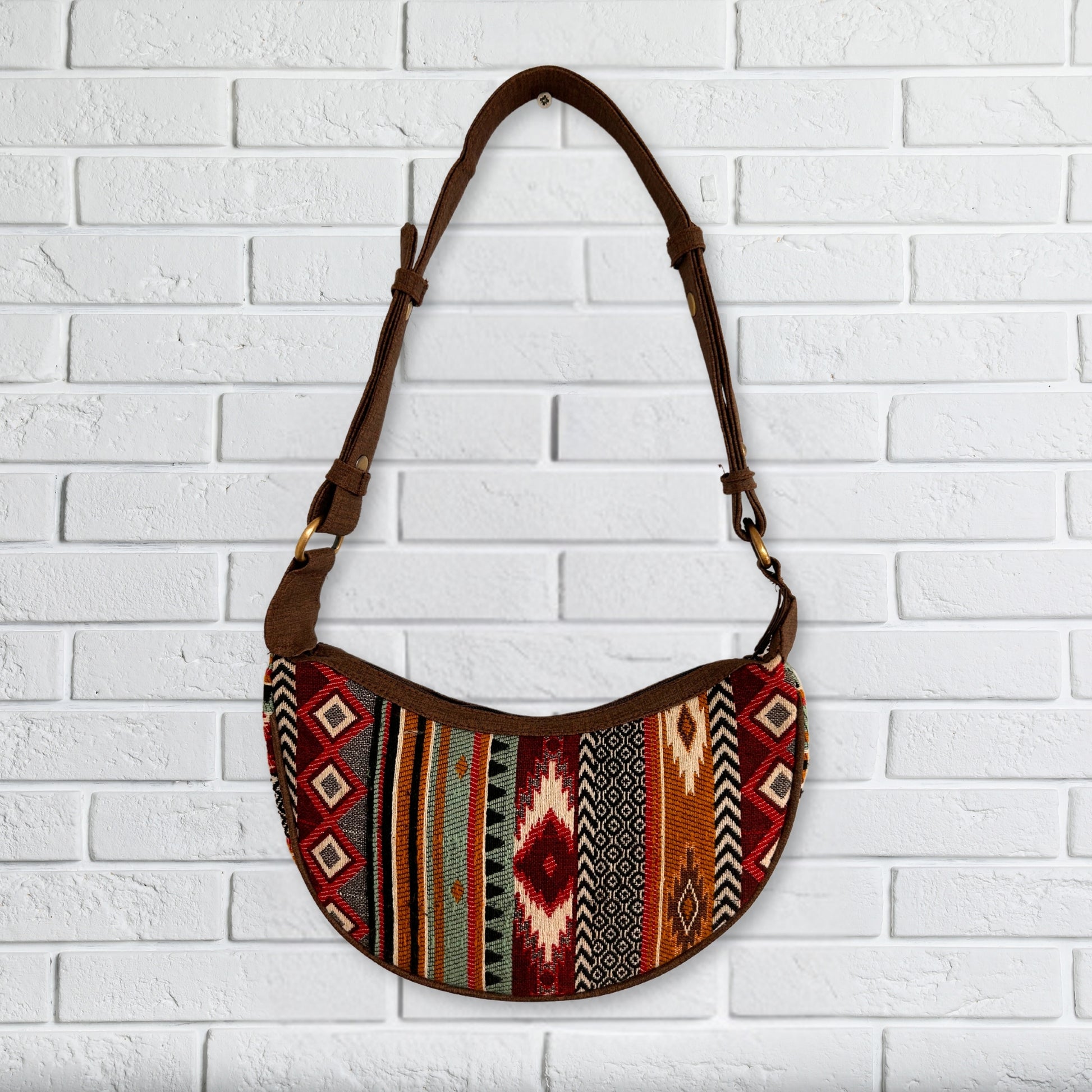 Jacquard Hobo Bag – Dunkelbrauntöne (brauner Riemen)
