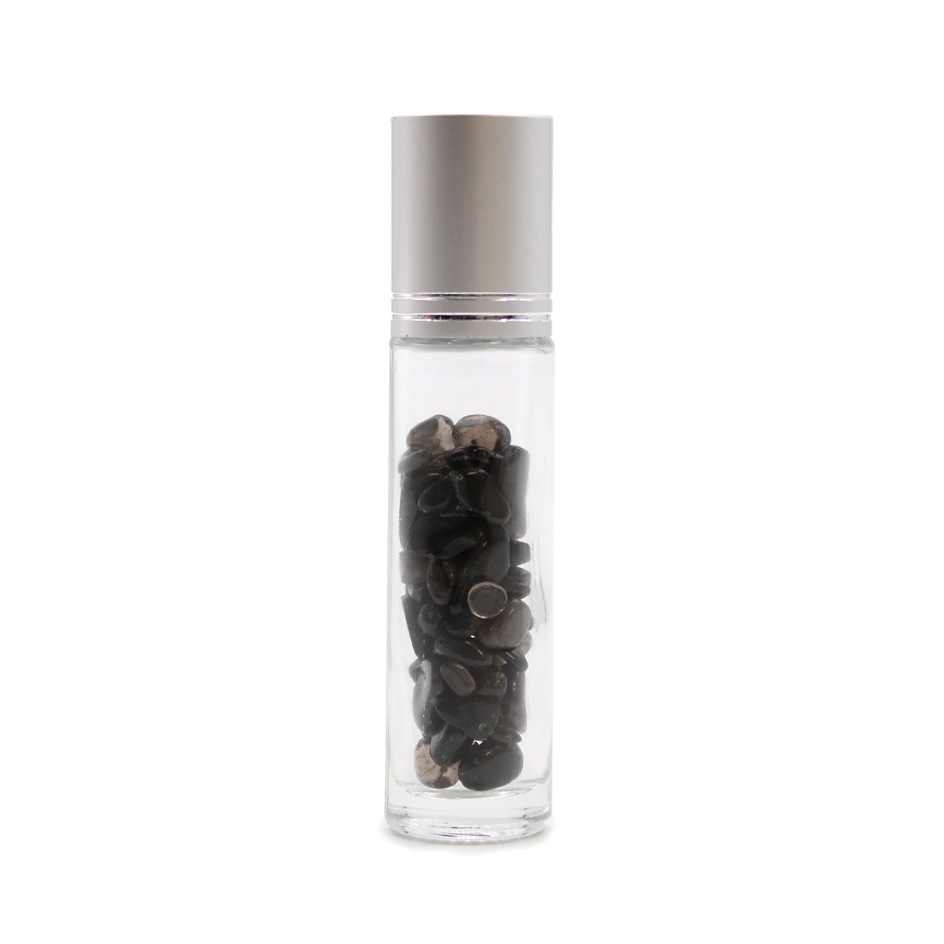 Edelstein-Rollerflasche für ätherische Öle – Schwarzer Turmalin – Silberkappe
