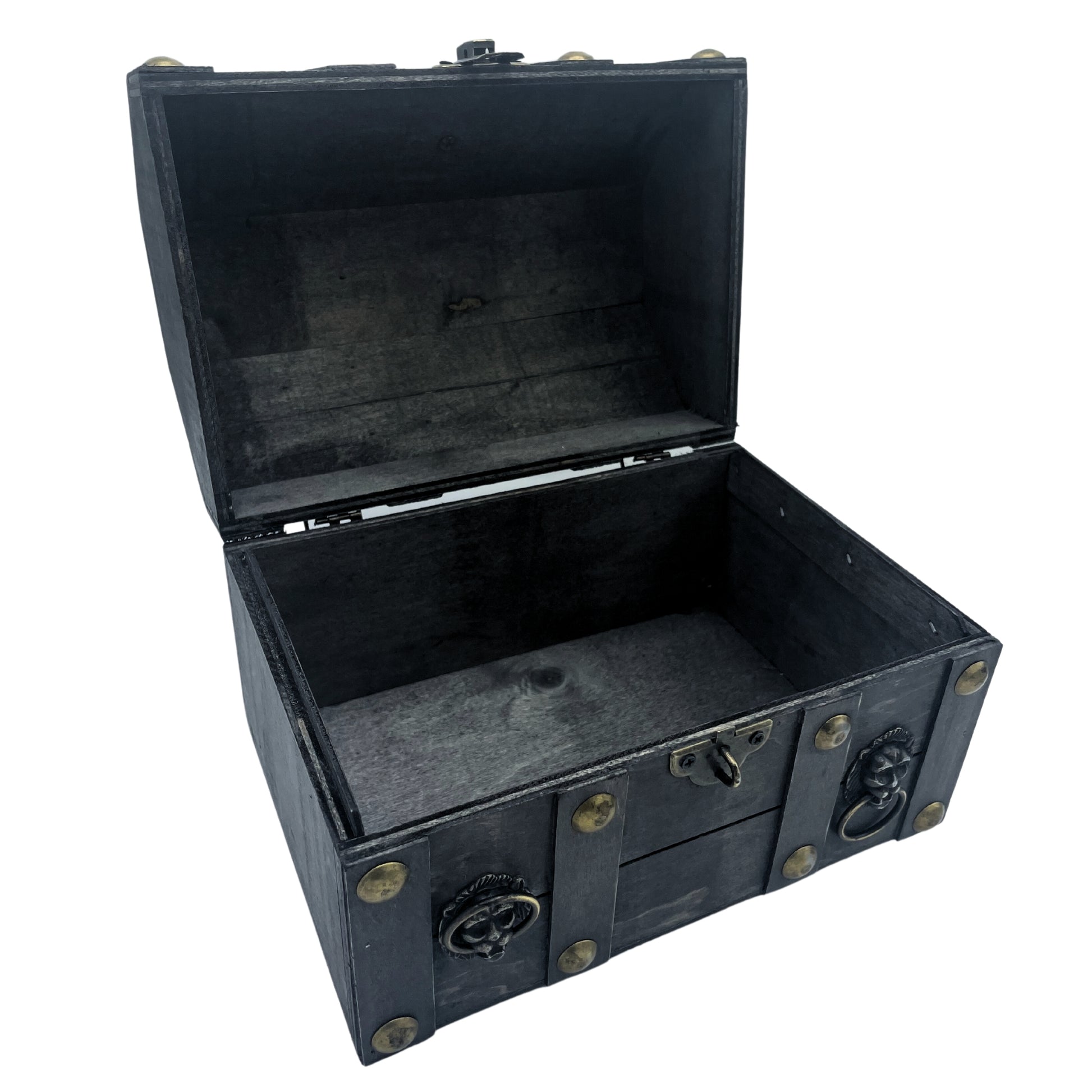 Stellen Sie sich diese Truhe auf einem Regal vor, als Schmuckschatulle oder auf Ihrem Schreibtisch, um Briefe und Fotos aufzubewahren, die einen besonderen Platz verdienen. Ihr Fassungsvermögen ist ideal für alle, die Ästhetik und Funktionalität in einem einzigen Gegenstand vereinen möchten. Machen Sie die große Schatztruhe – Grau zum Wächter Ihrer wertvollsten Schätze.