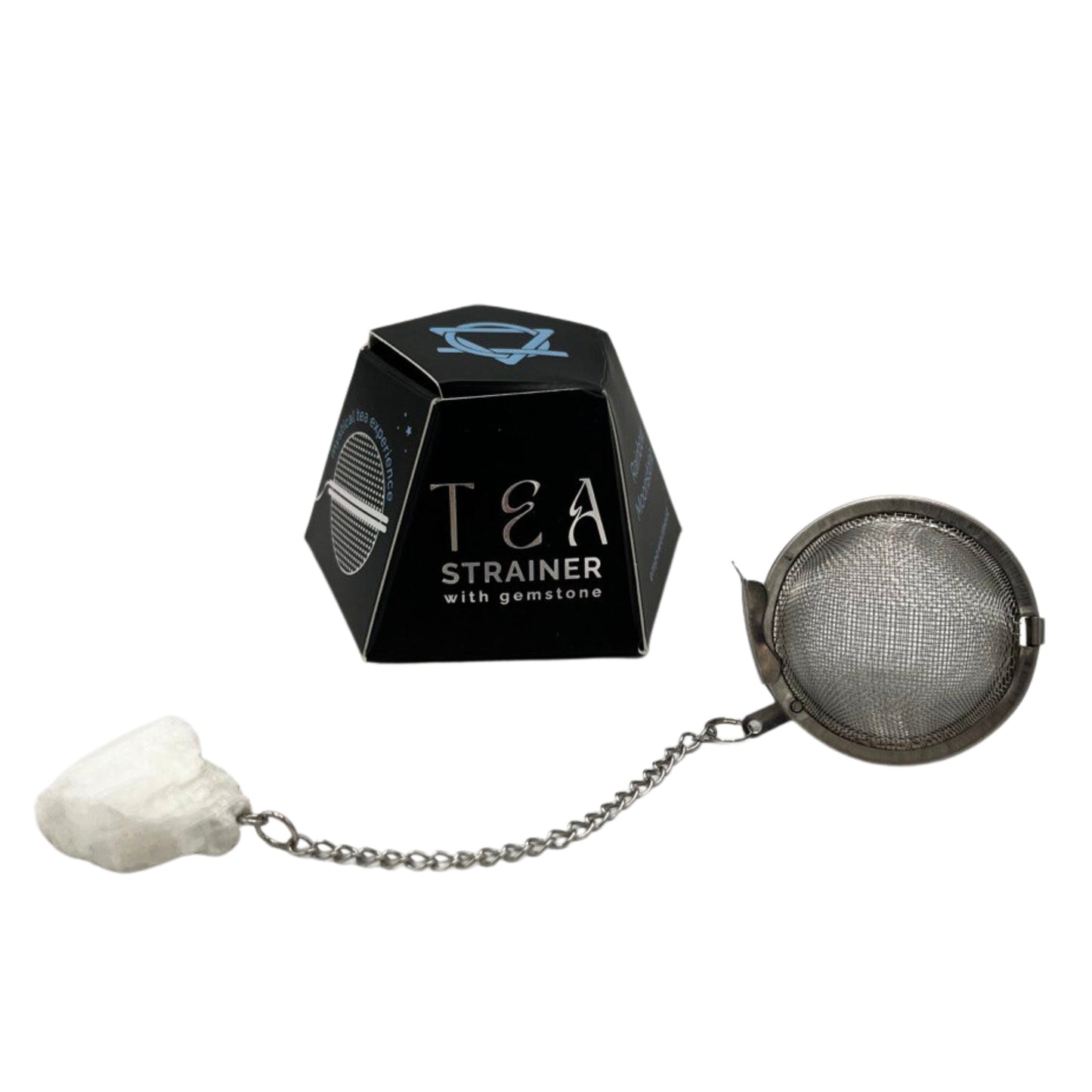 Teesieb aus Rohkristall-Edelsteinen – Regenbogen-Mondstein