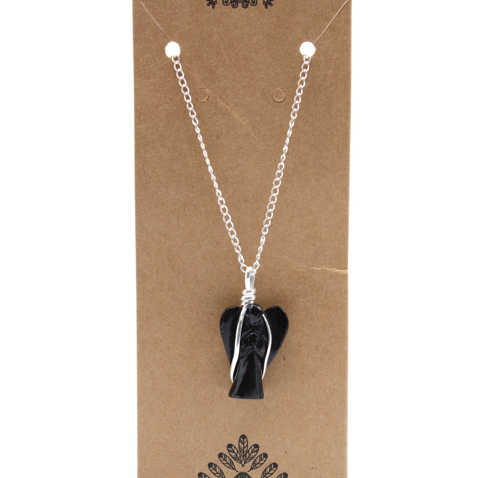 Edelstein Schutzengel Anhänger - Schwarzer Achat