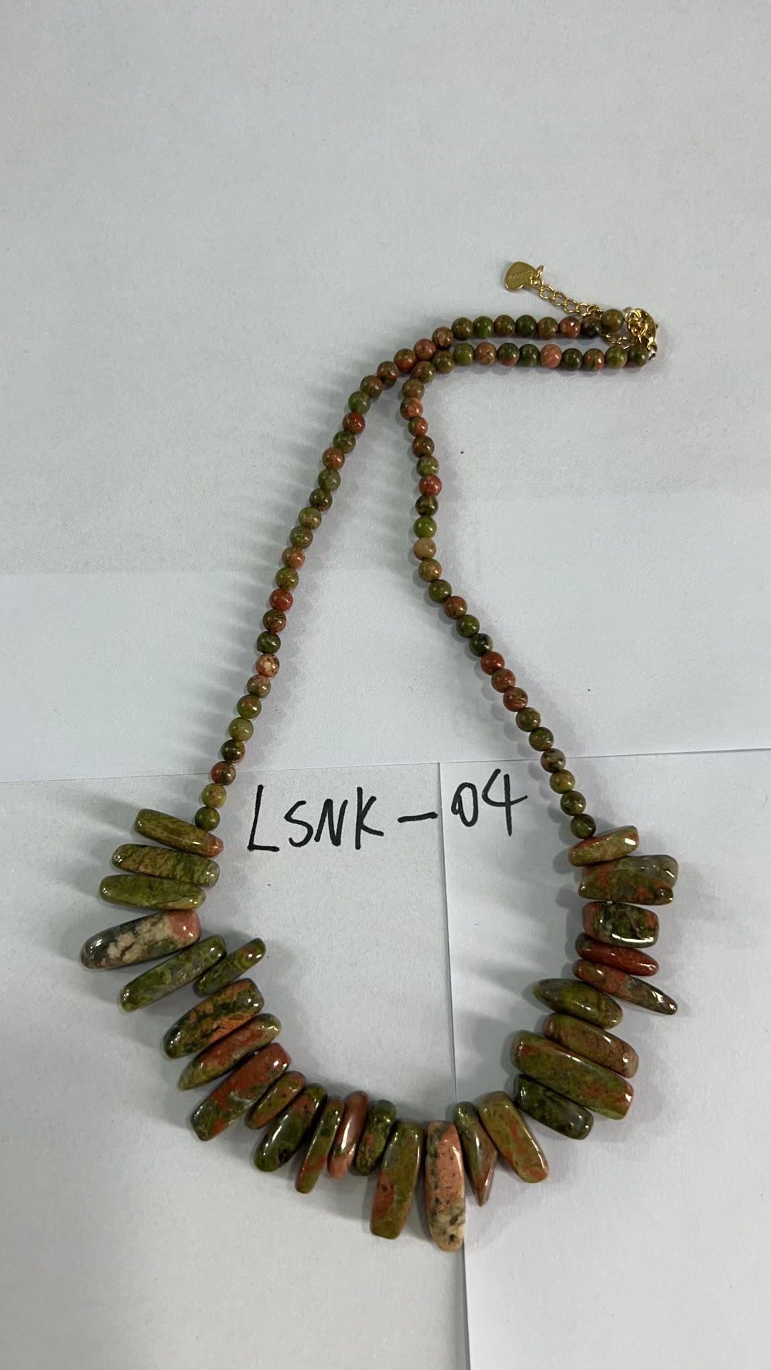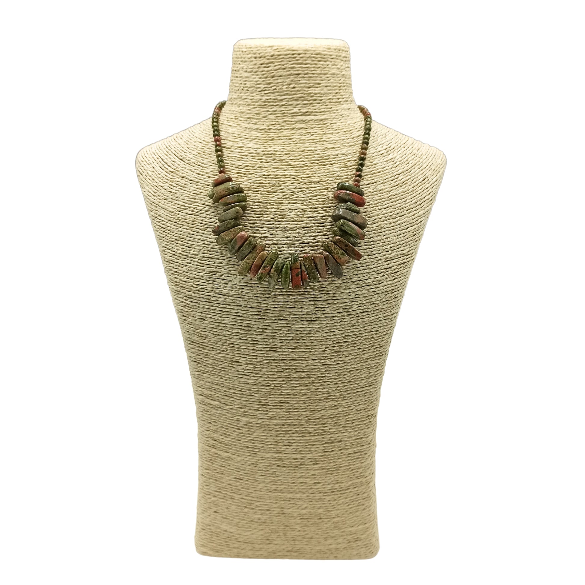 Jedes Stück wird sorgfältig ausgewählt und poliert, um seine innere Schönheit hervorzuheben und es zur perfekten Ergänzung sowohl für lässige Outfits als auch für formellere Anlässe zu machen. Mit ihrem vielseitigen Design und der beruhigenden Kraft des Moosachats verspricht diese Halskette nicht nur, Ihren Stil zu bereichern, sondern auch ein Gefühl der Ruhe und Verbundenheit mit der Natur zu vermitteln. Tragen Sie sie und lassen Sie sich von ihrem Charme und ihren angeblich stärkenden Eigenschaften durch Ihren Alltag begleiten.