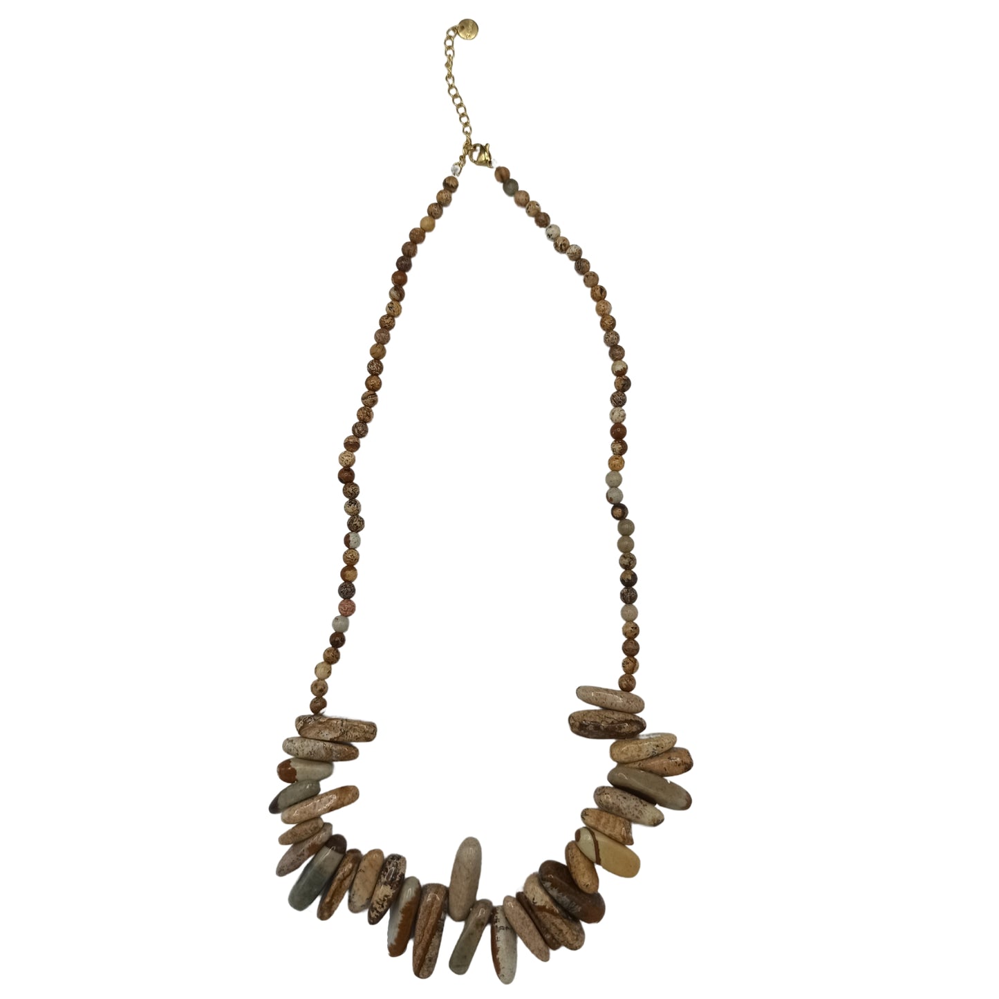 Mit der Longstone Edelsteinkette – Map Stone tragen Sie ein Stück Natur in einem einzigartigen Design, das nicht nur Ihren Hals verschönert, sondern jedem Outfit eine besondere Note verleiht. Jedes Stück ist eine Reise in die Schönheit der Authentizität, wo Eleganz auf die Mystik sorgfältig ausgewählter Edelsteine trifft, um höchste Qualität zu gewährleisten.