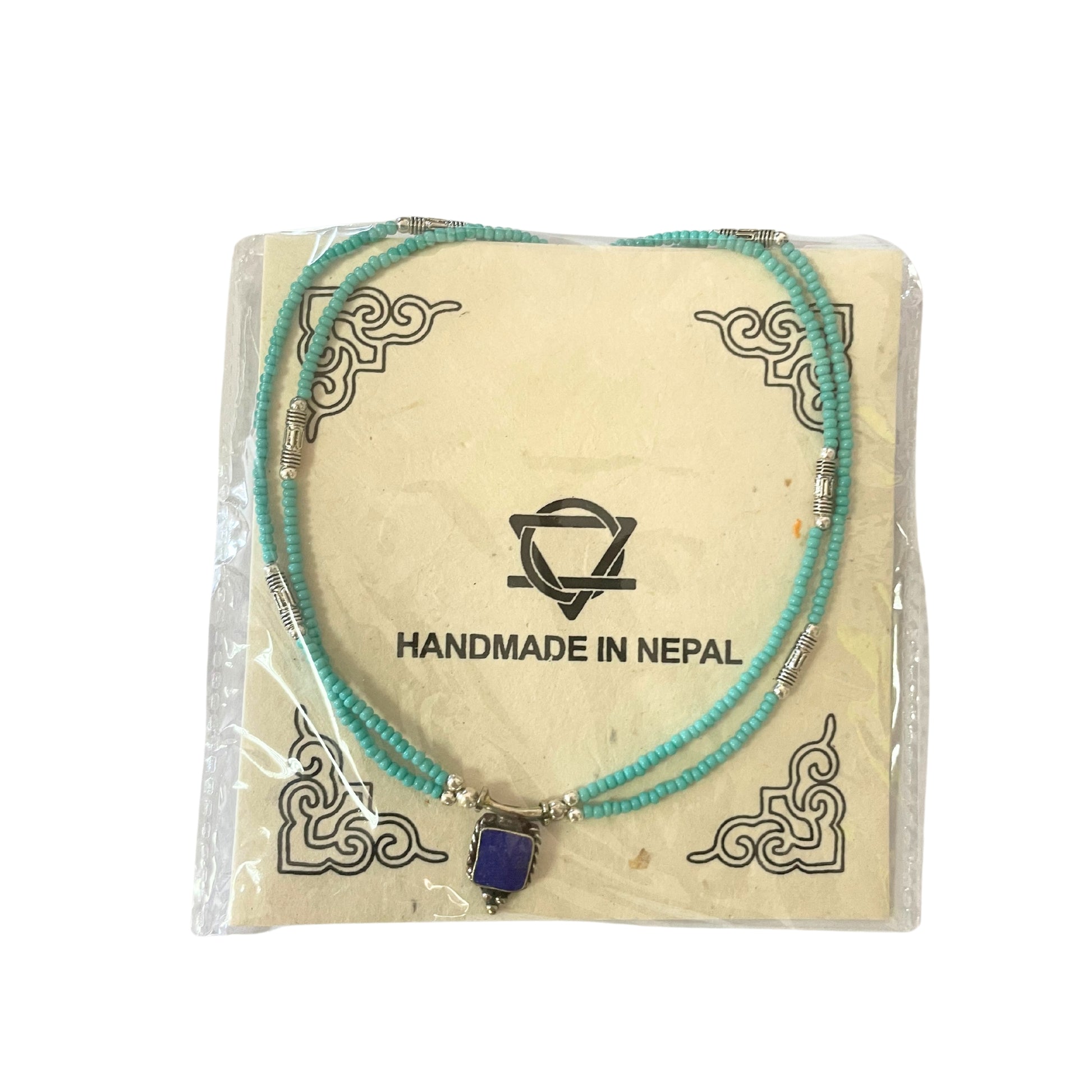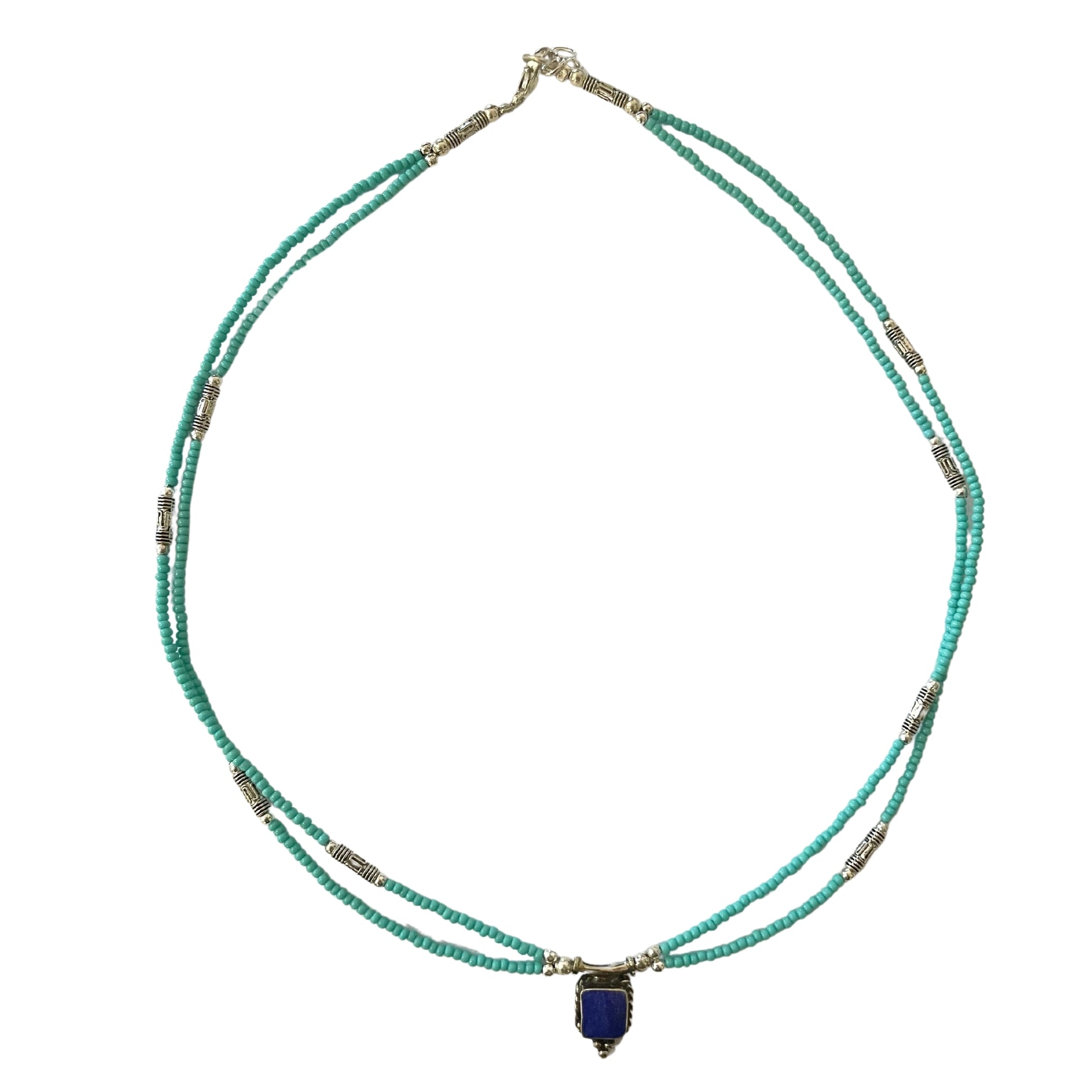 Extra dünne zweireihige nepalesische Halskette – Anhänger aus Türkis und Lapislazuli