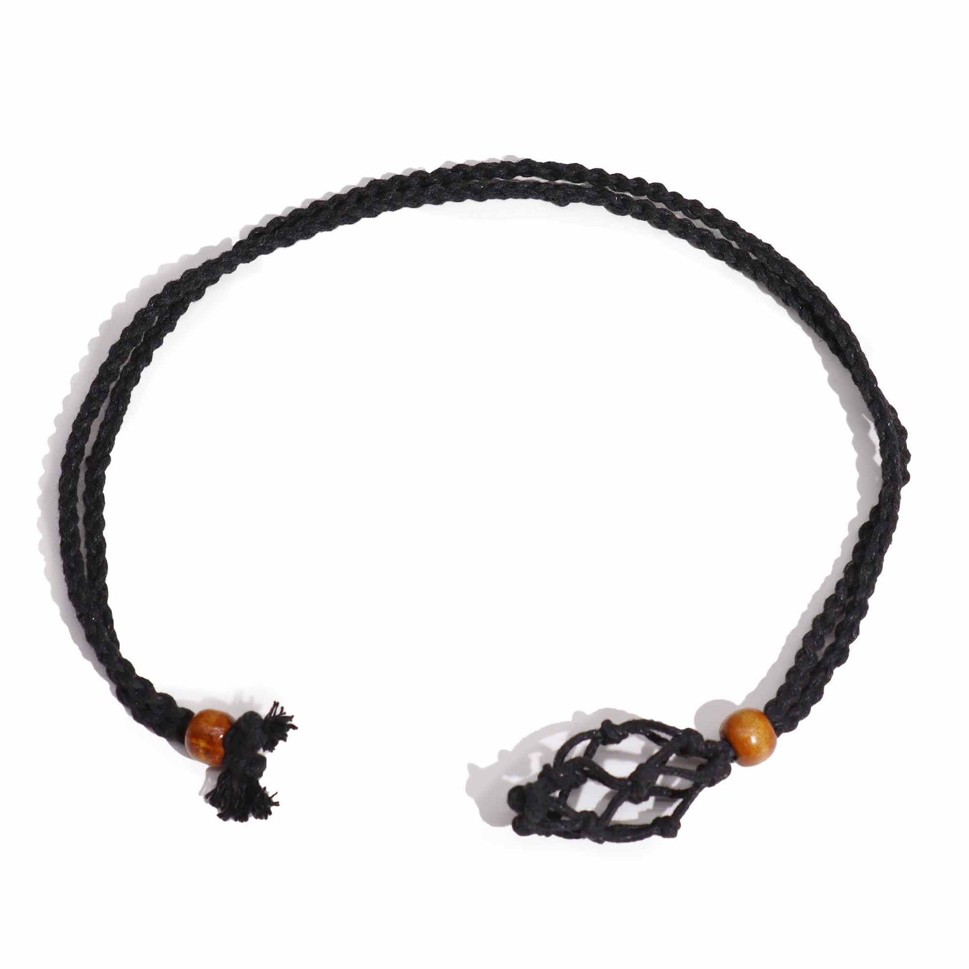 Materialien / Zutaten: Holzperlen, gewachste Baumwolle