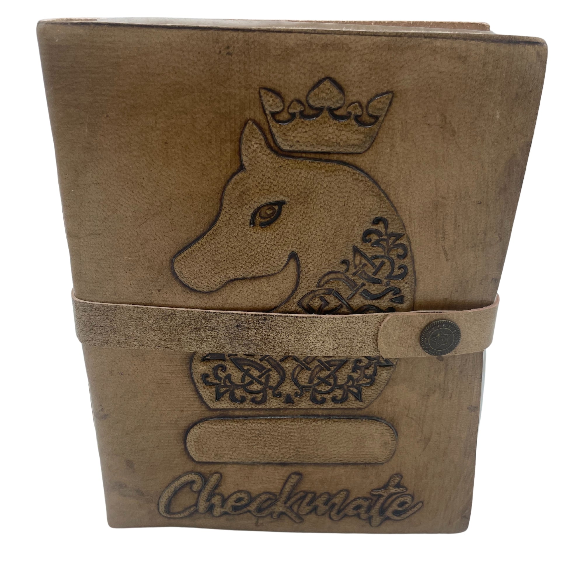 - Checkmate-Notizbuch in Hellbraun mit abgenutzten Kanten