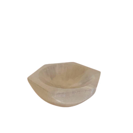 Wählen Sie diese sechseckige Selenitschale mit 10 cm Durchmesser, um Ihrem Zuhause einen Hauch von Licht und Ruhe zu verleihen. Sie verbindet natürliche Schönheit mit außergewöhnlichem Design – ideal für alle, die Eleganz in ihrer reinsten Form schätzen.
