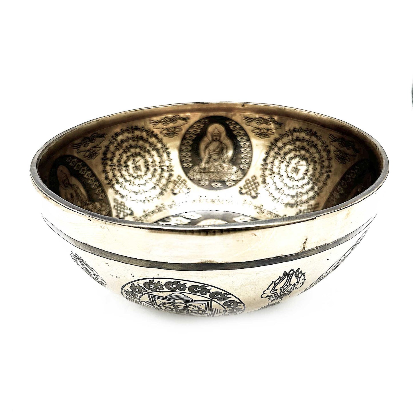 Gravierte heilende tibetische Klangschale – 21 cm – 5 Buddhas