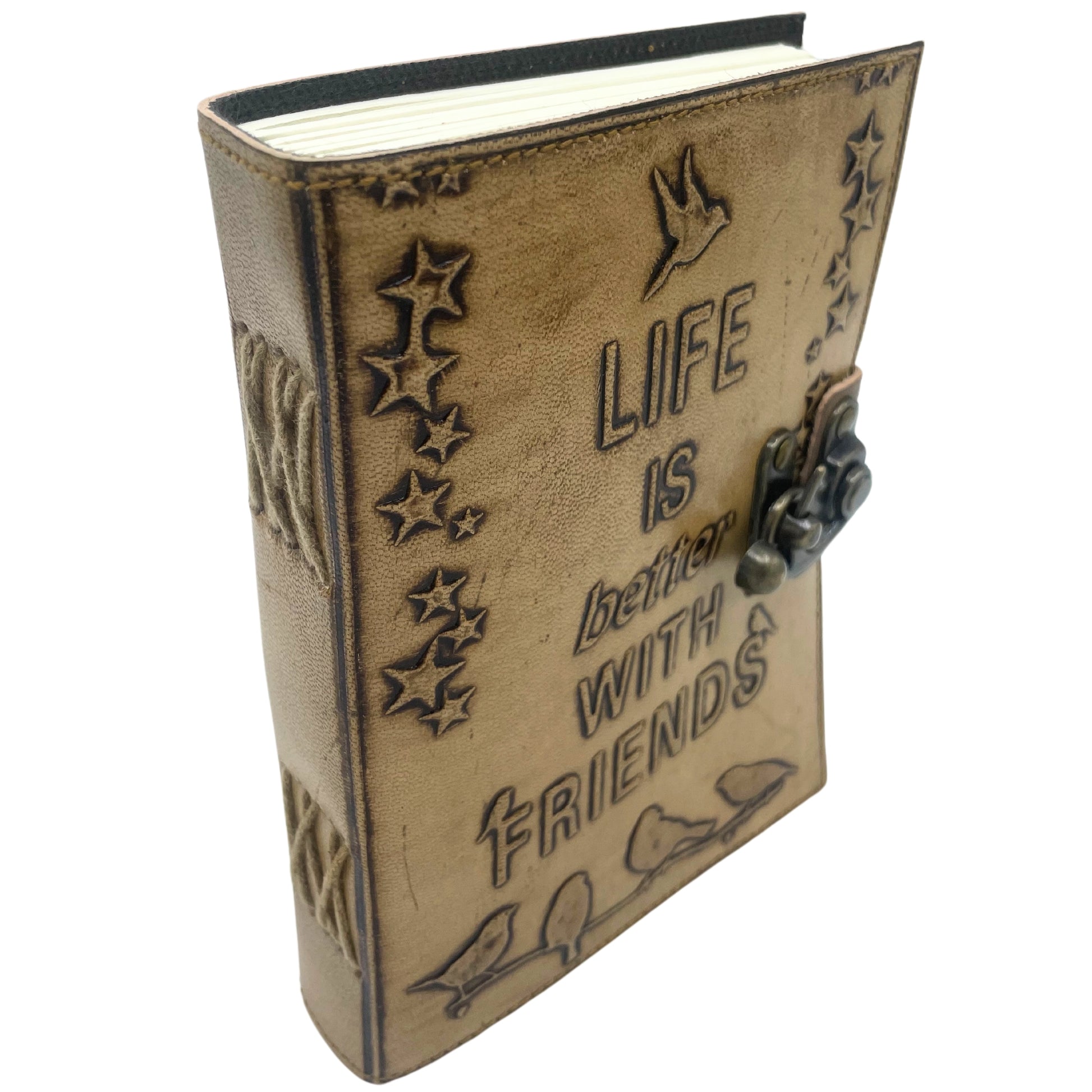 Ledertagebuch - Das Leben ist schöner mit Freunden - 12,5 x 17,5 cm