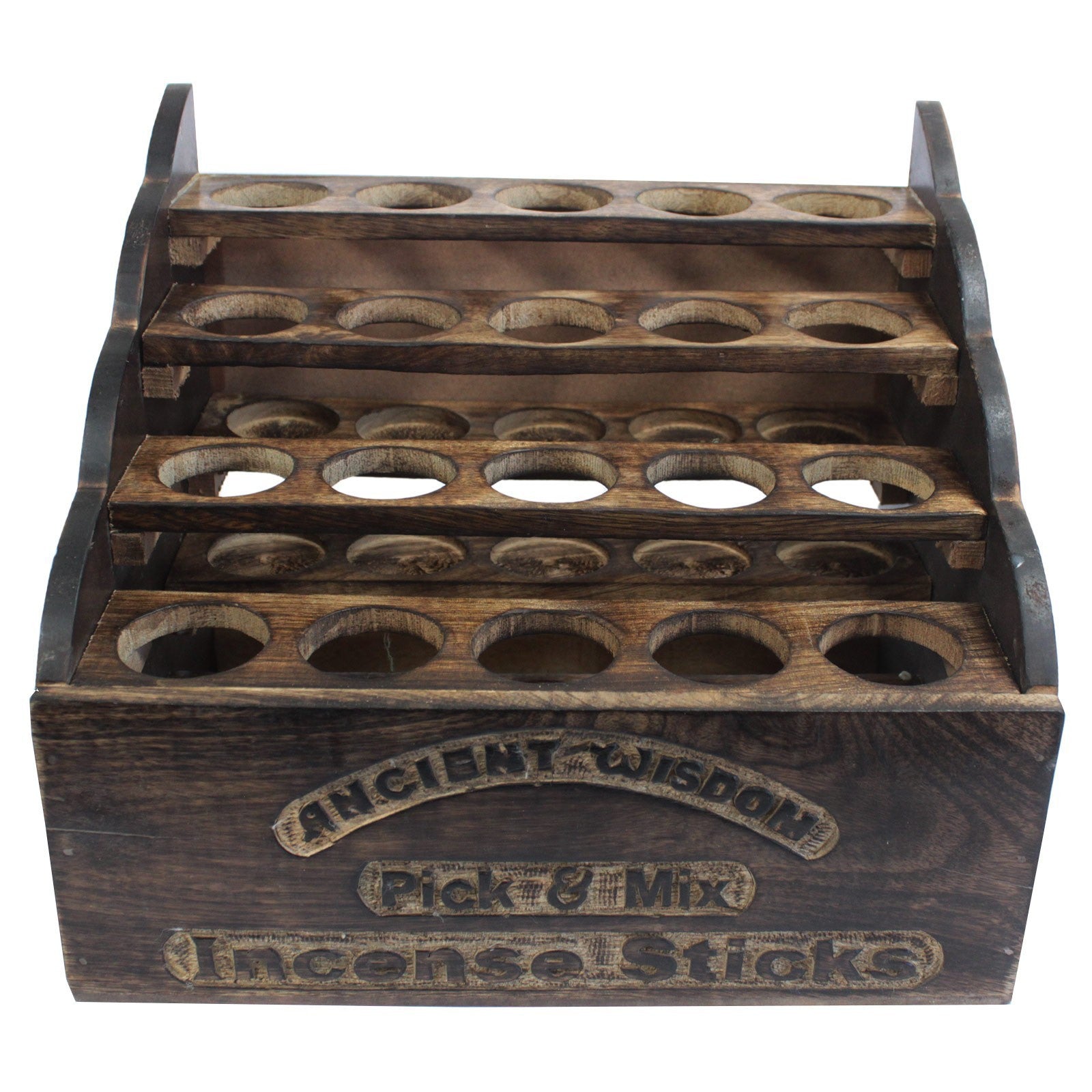 Der P&M Räucherstäbchenständer aus Holz bietet Platz für eine große Auswahl an Räucherstäbchen und besticht durch sein praktisches und funktionales Design. Seine Struktur ermöglicht einfachen Zugriff und die Präsentation Ihrer Lieblingsräucherstäbchen, sodass Sie immer den richtigen Duft zur Hand haben. Ob als Blickfang in Ihrem Wohnzimmer, Arbeitszimmer oder Schlafzimmer – dieser Ständer verleiht Ihrem Raum einen Hauch von dezenter Eleganz und eine ruhige Atmosphäre.