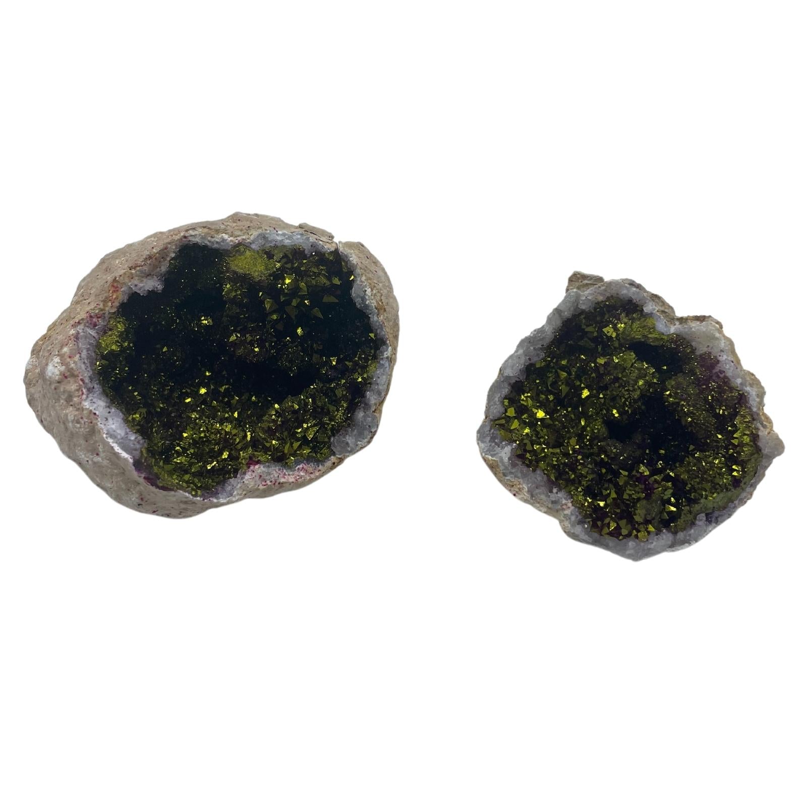 Diese Geoden eignen sich perfekt als Dekorationselement und können im Arbeitsbereich platziert werden, um die Kreativität zu fördern, im Wohnzimmer einen eleganten Touch zu verleihen oder sogar im Schlafzimmer als Symbol der Ruhe und Entspannung. Ihr natürlicher Glanz zieht Licht an und erzeugt faszinierende Reflexionen und Schatten, die jede Umgebung aufwerten.