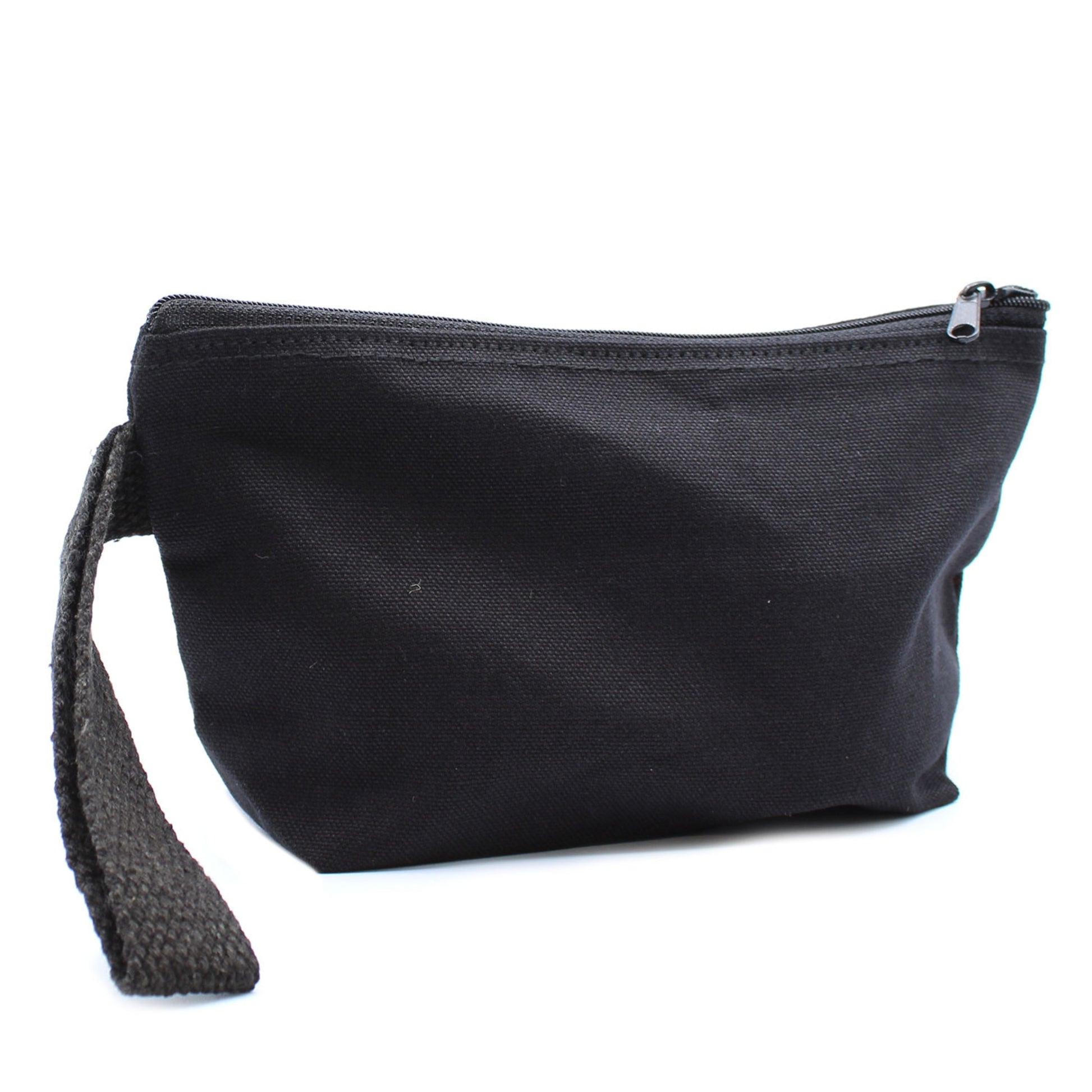 - Schwarze Kulturtasche aus Baumwolle mit Handschlaufe, perfekt für unterwegs