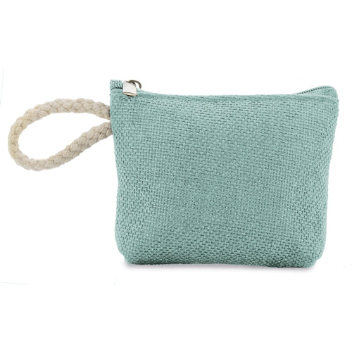 Original monedero con asa tipo cordón marinero a juego con la textura de imitación jute, ideal para llevar tus monedas, llaves, dinero.