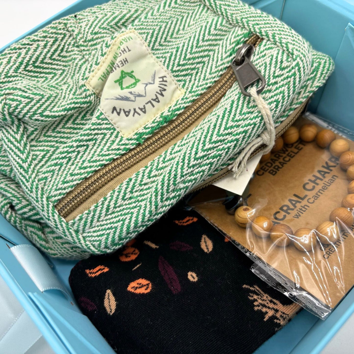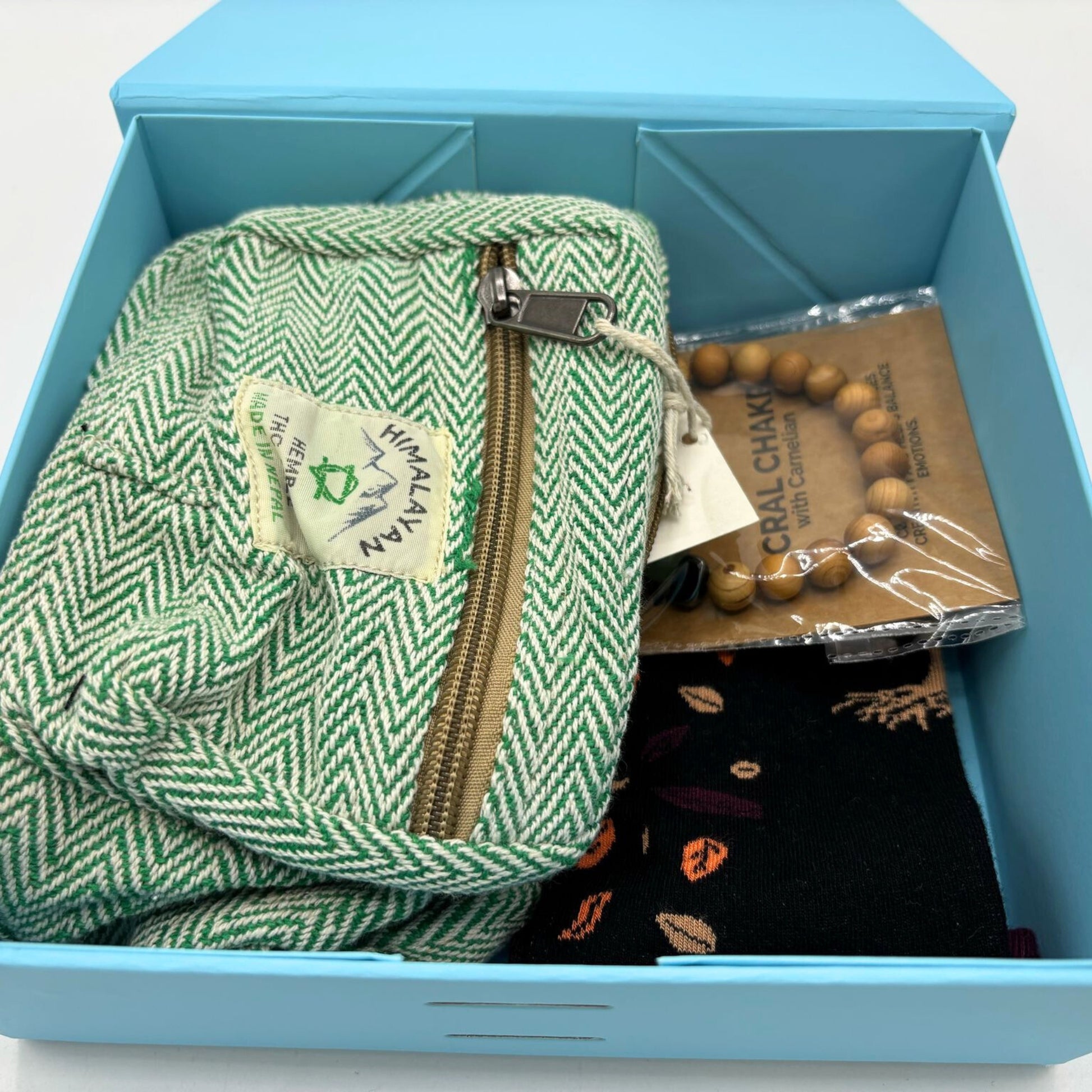 Dieses Paket ist die ideale Wahl für Menschen, die Wert auf Komfort und Stil legen. Die faltbare Geschenkbox mit babyblauer Schleife verleiht ihm eine besondere und elegante Note. Das Armband aus Zedernholz und grünem Aventurin ist perfekt für Menschen, die Wert auf energetisches Gleichgewicht und emotionales Wohlbefinden legen. Die Lebensbaum-Socken bieten einzigartigen Komfort, während die Gürteltasche das ideale Accessoire ist, um wichtige Dinge stilvoll zu transportieren.