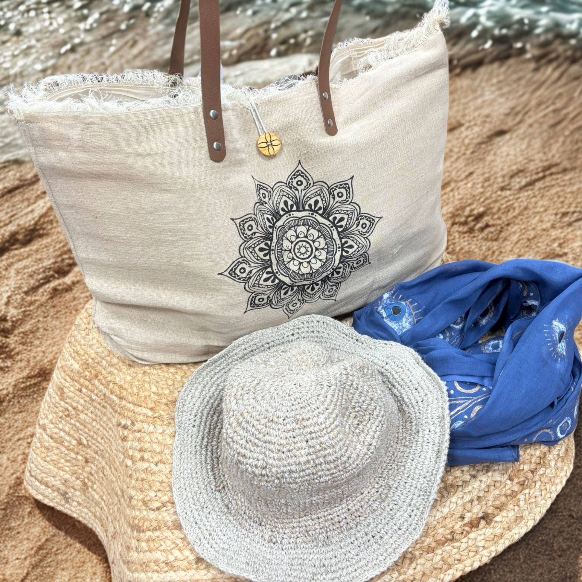 - • Naturtasche mit Ledergriff, zeitloses und handgefertigtes Accessoire