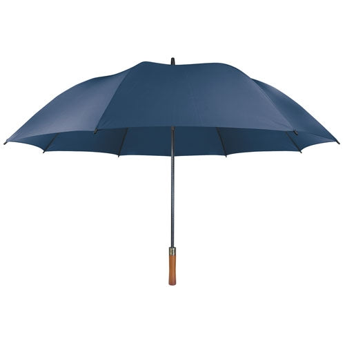 Druckknopf-Regenschirm mit Holzgriff und wasserdichtem Stoff. Erhältlich in Marineblau, Schwarz und Stein.