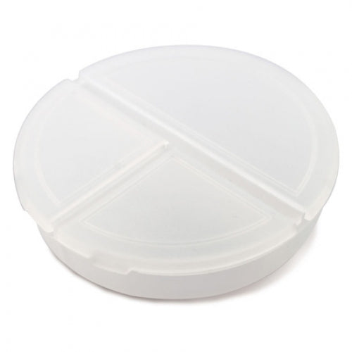 BPA-FREI Runde Pillendose mit drei Deckeln: zwei kleine Fächer und ein doppelt so großes. Perfekte Größe für Handtasche, Rucksack, Kulturbeutel oder Gürteltasche. Hergestellt aus BPA-freiem Material mit halbtransparenter Oberfläche. Erhältlich in fünf Farben: Royalblau, Eisblau, Lila, Rot und Grün.