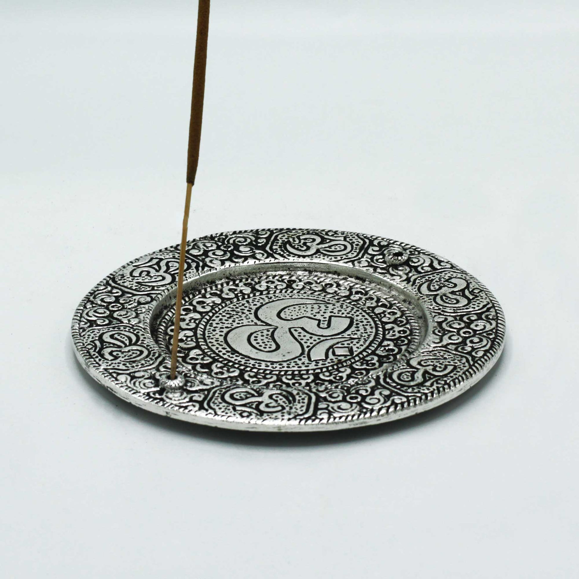 Runder Om-Räucherstäbchenhalter aus poliertem Aluminium, 11 cm