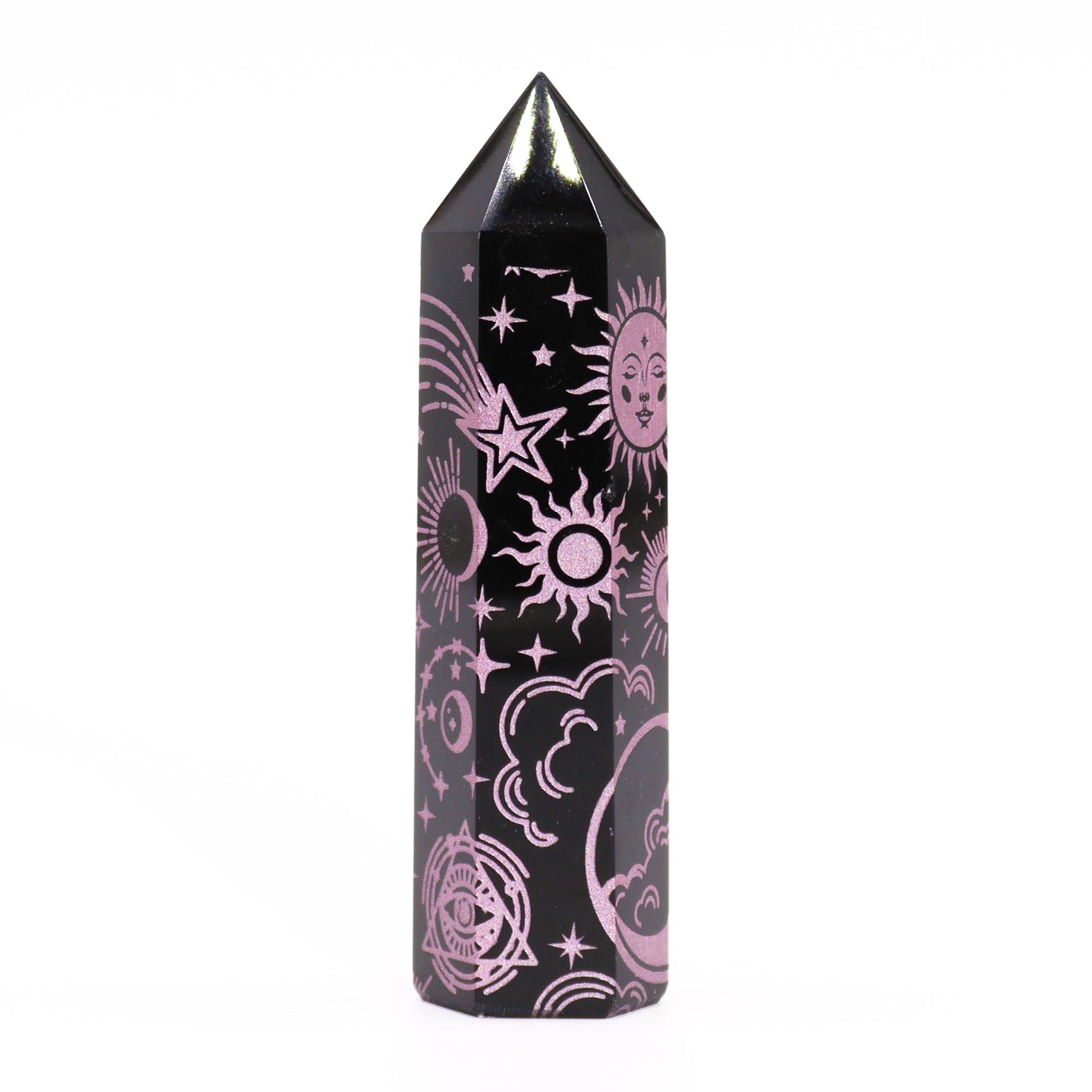Schwarze Obsidianspitzen (ca. 60–70 g, 9 cm) – Mystische Geschichte – Rosa