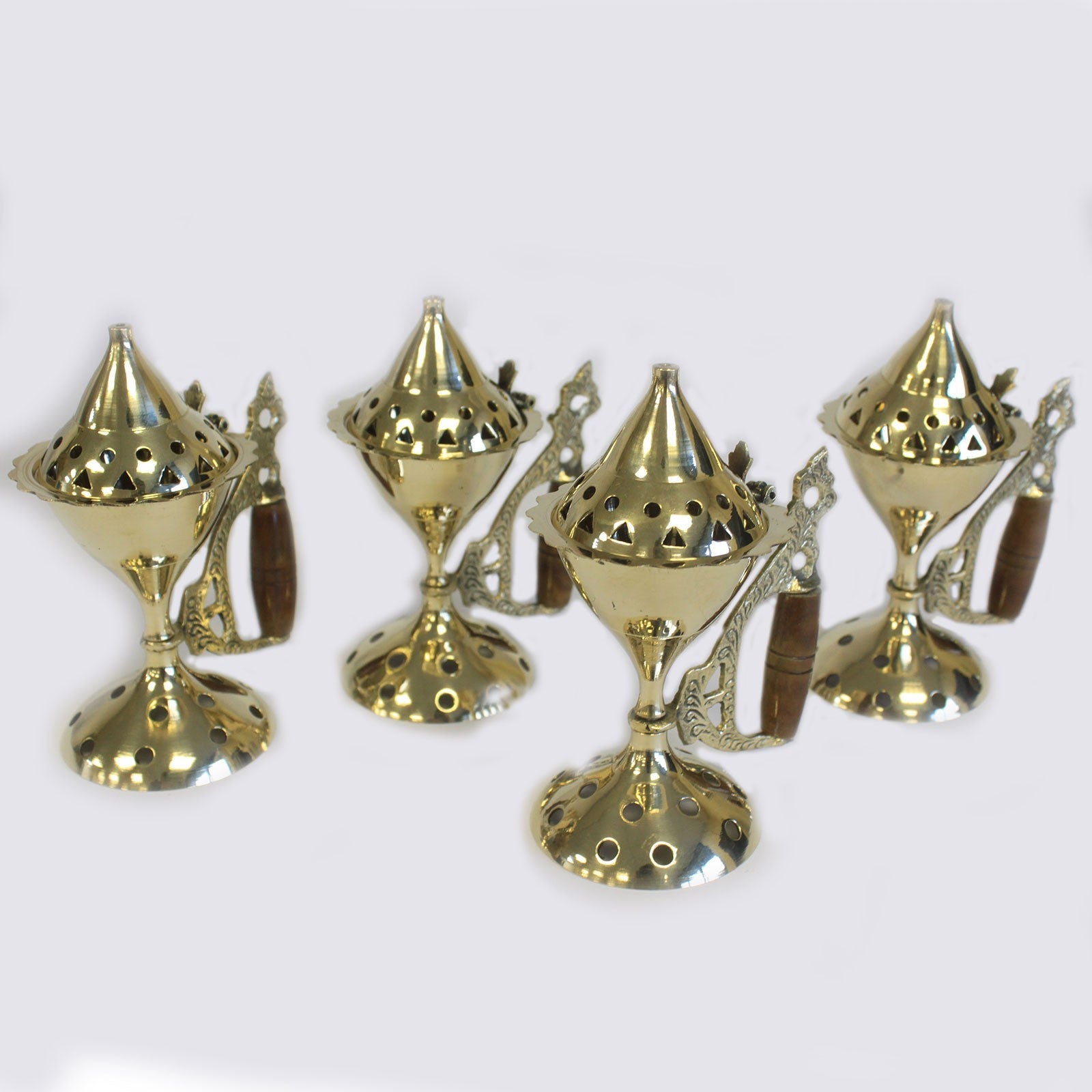 100 % massives Messing und wunderschön verarbeitet. Räuchergefäße haben einen abnehmbaren Holzgriff zum Tragen, wenn Sie das Räucherwerk von einem Raum in einen anderen bewegen möchten.