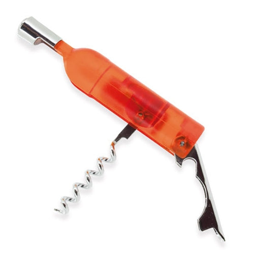 Sacacorchos de diseño funcional con forma de botella en tonalidad rosada. Ideal para complementar tu colección de accesorios de vino con un toque de elegancia contemporánea. Perfecto como regalo para amantes del vino que aprecian los detalles de diseño. Combina practicidad y estética en un accesorio imprescindible para cualquier mesa o bodega.