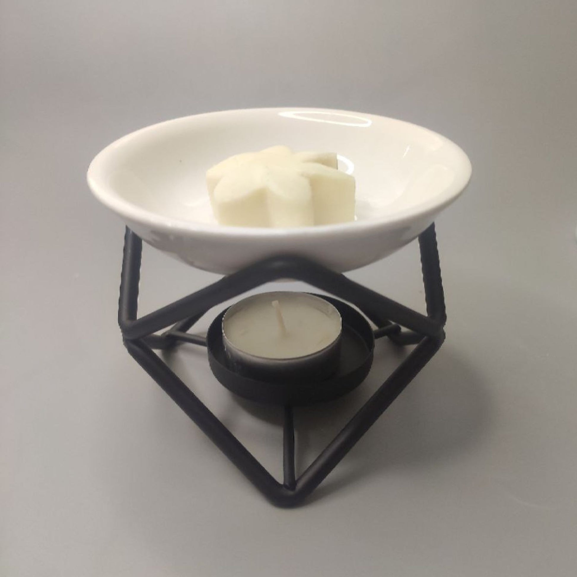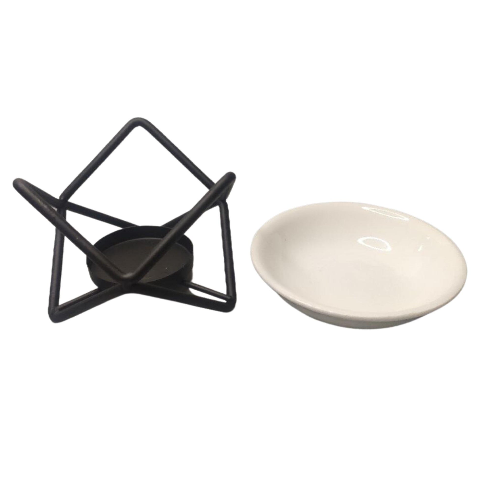 - Solider Metallsockel, der eine sechseckige Struktur aus polierter Keramik umrahmt