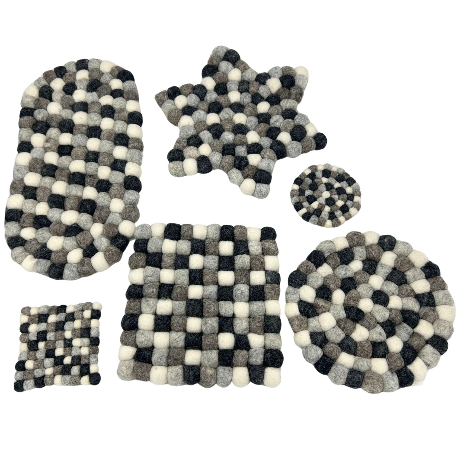 Ovale Filzkugel-Tischset-Matte – 38 x 18 cm, mehrfarbiges Grau