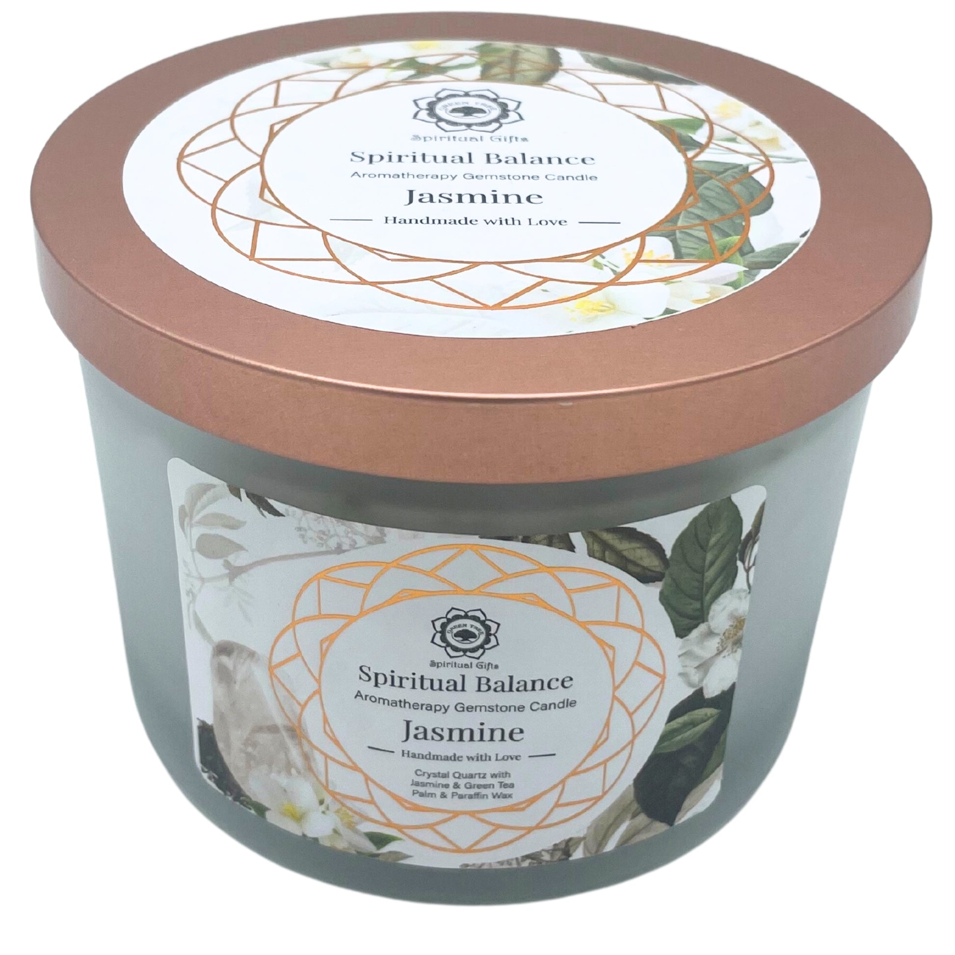 Edelsteinkerze mit Jasmin und Bergkristall – Spirituelles Gleichgewicht