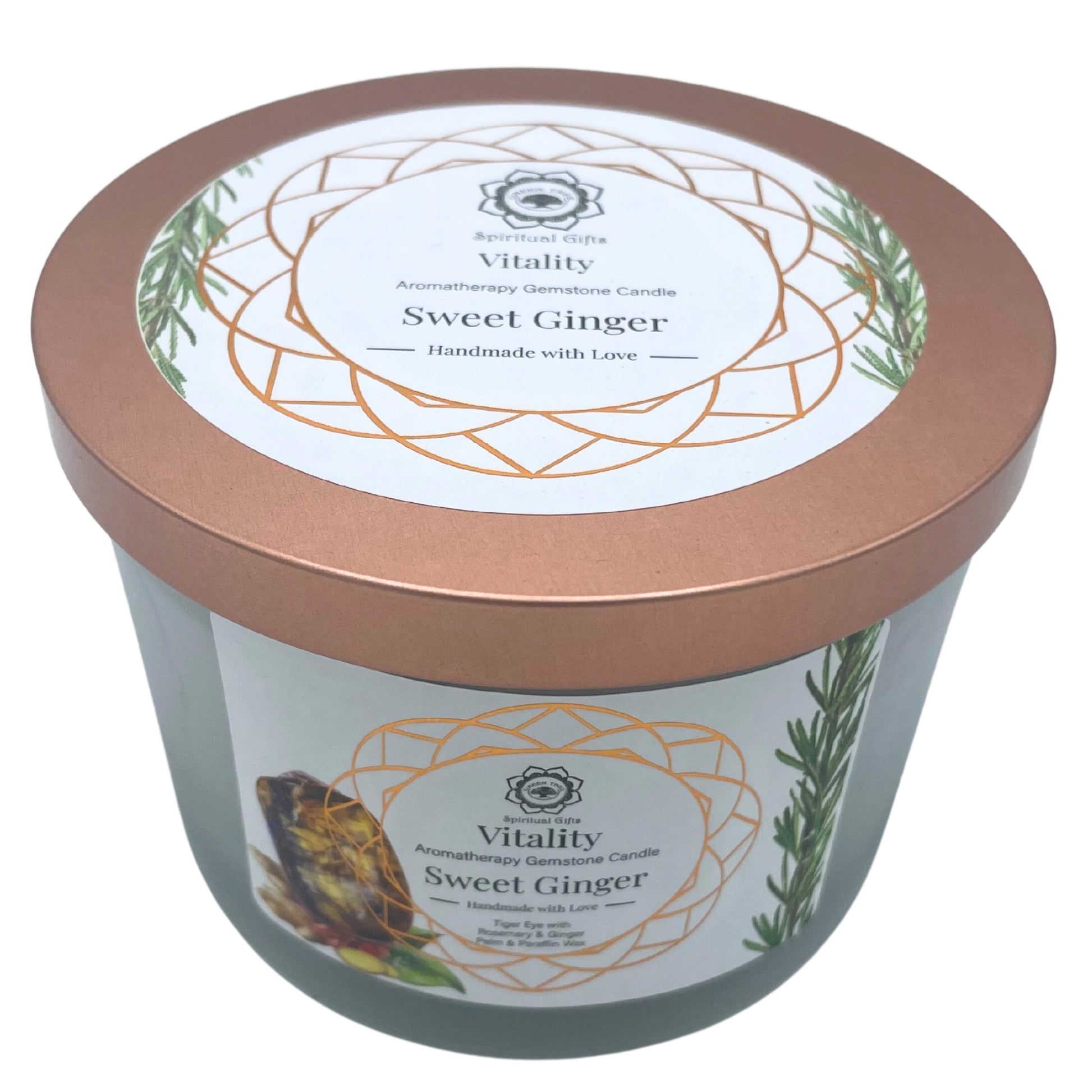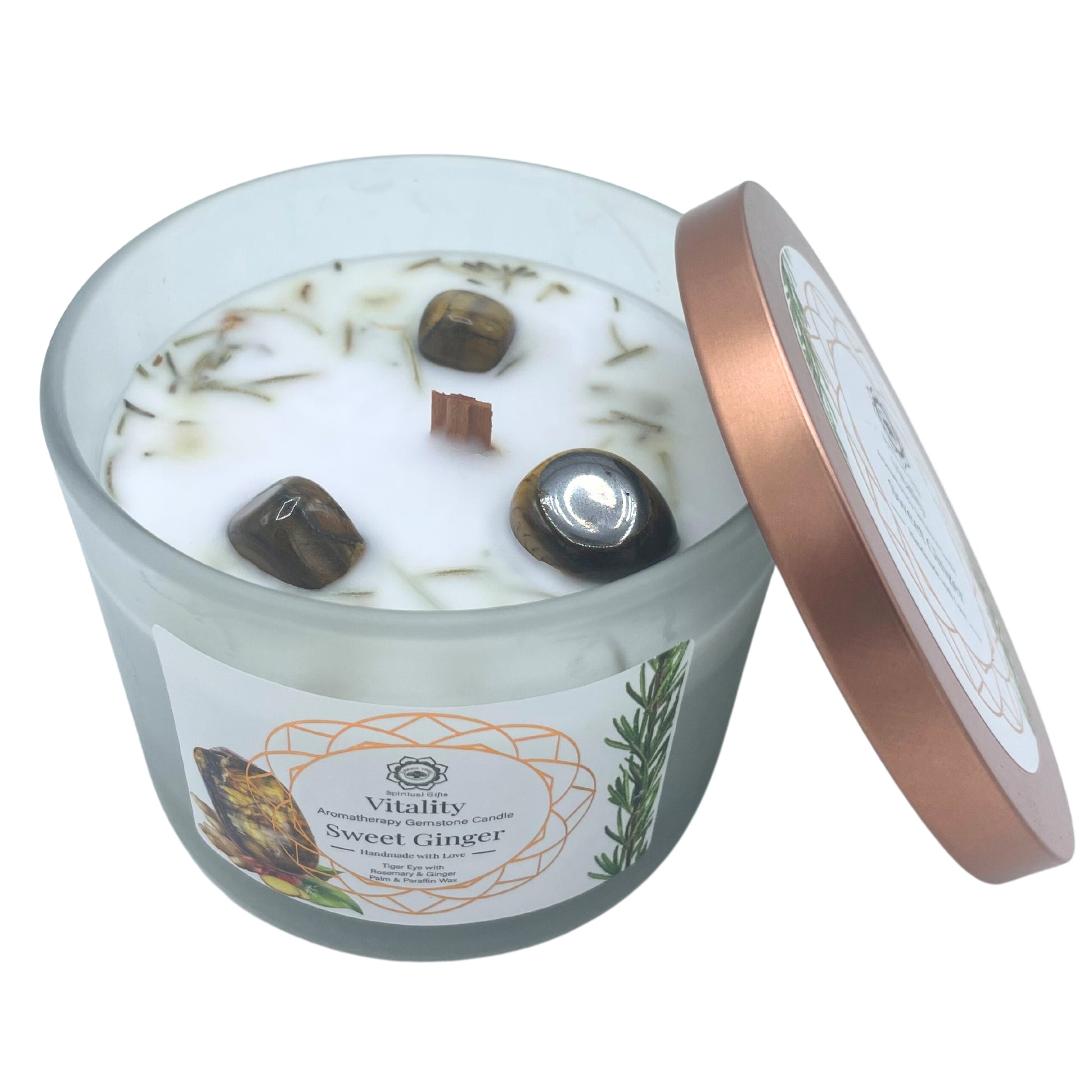 - Envuelve tu hogar con la energía vigorizante de la Vela de Jengibre y Piedra Preciosa de Ojo de Tigre