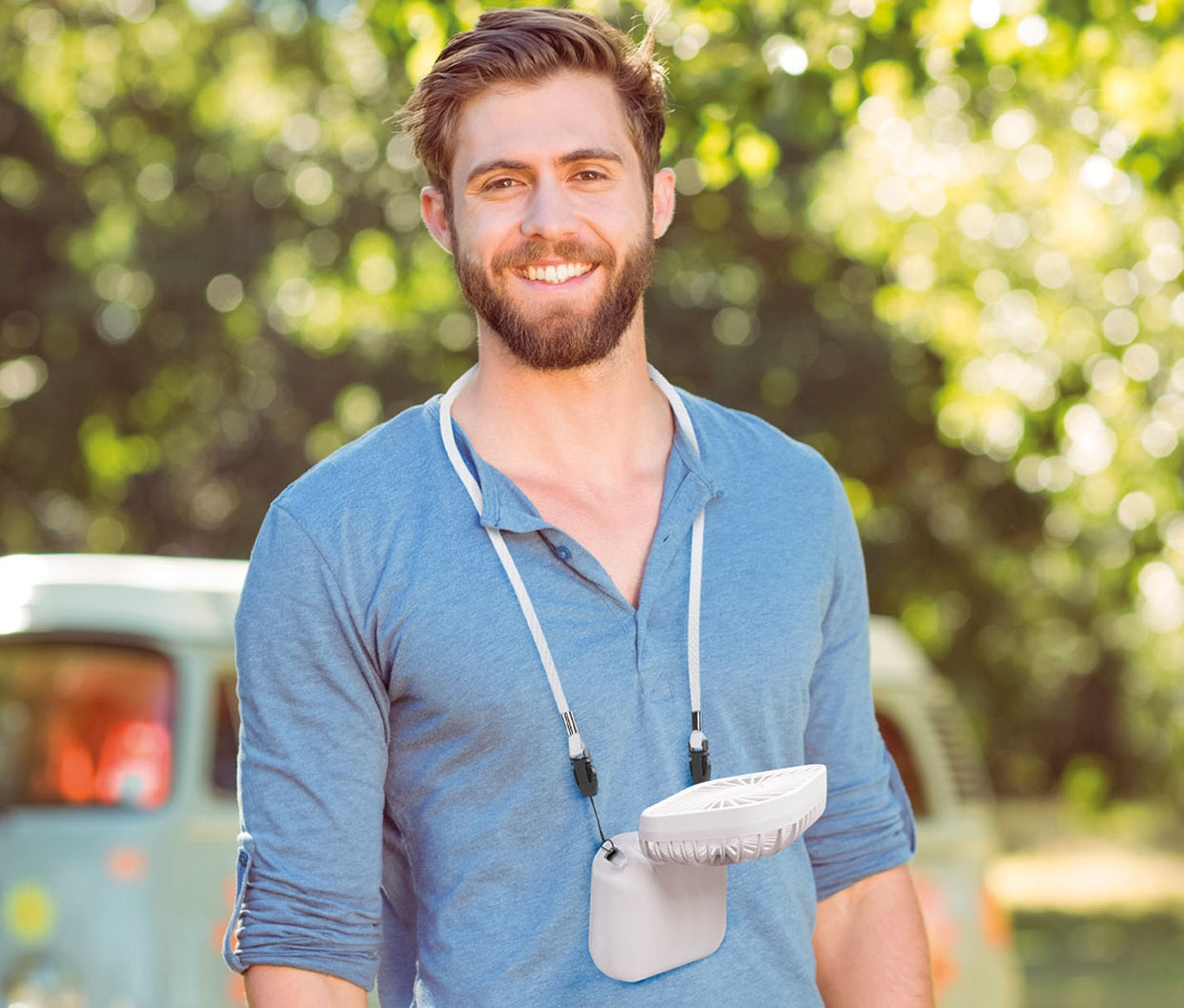 Für zusätzlichen Komfort ist dieser Ventilator mit einem Trageband ausgestattet, sodass Sie ihn einfach aufhängen und die Hände frei haben können. Außerdem verfügt er über ein Ladekabel, sodass er jederzeit einsatzbereit ist und Ihnen Linderung bei der Hitze verschafft. Besiegen Sie die hohen Temperaturen elegant und effektiv mit diesem unverzichtbaren Sommeraccessoire.
