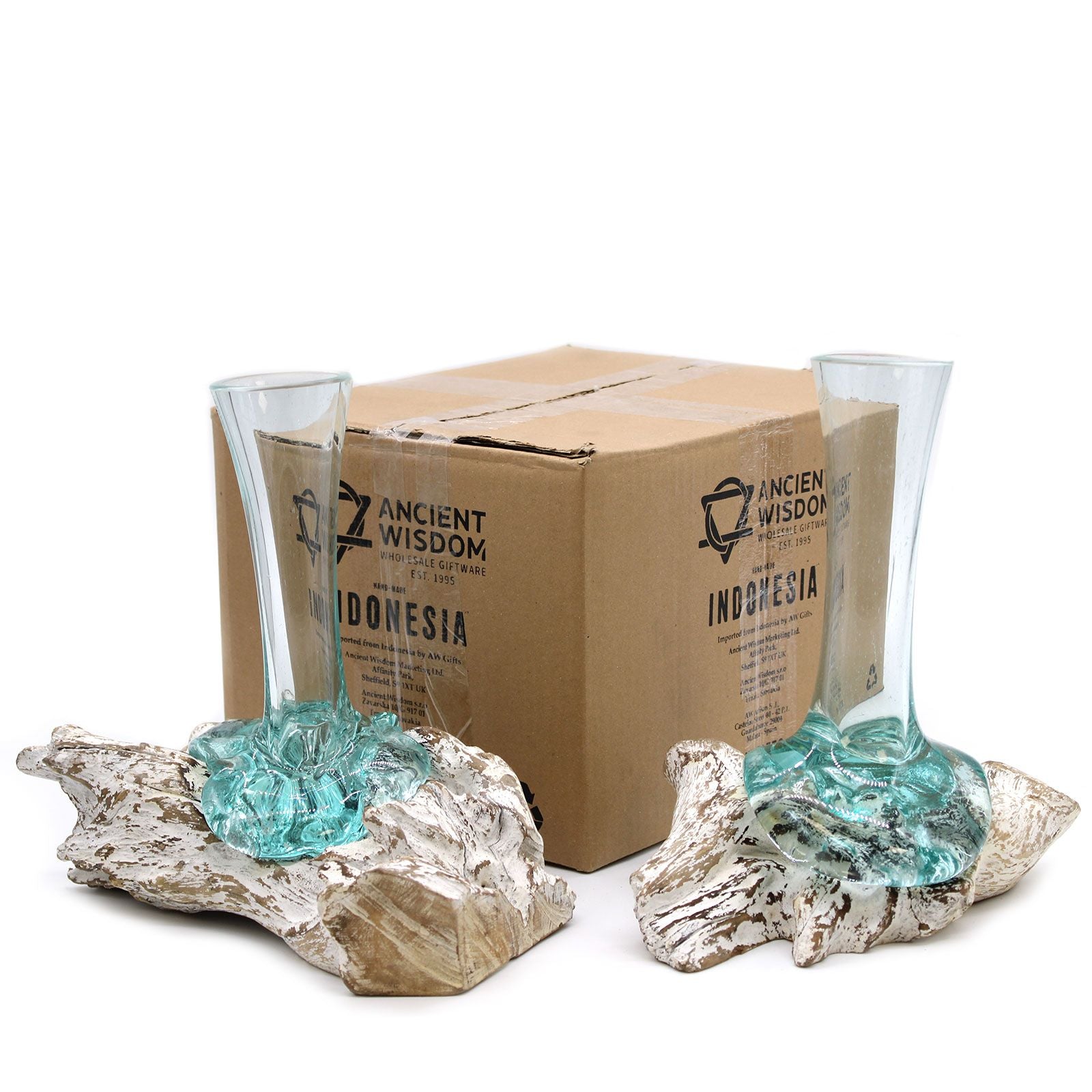 - • Hergestellt mit einer Technik, bei der geschmolzenes Glas auf eine gebleichte Holzbasis geschmolzen wird