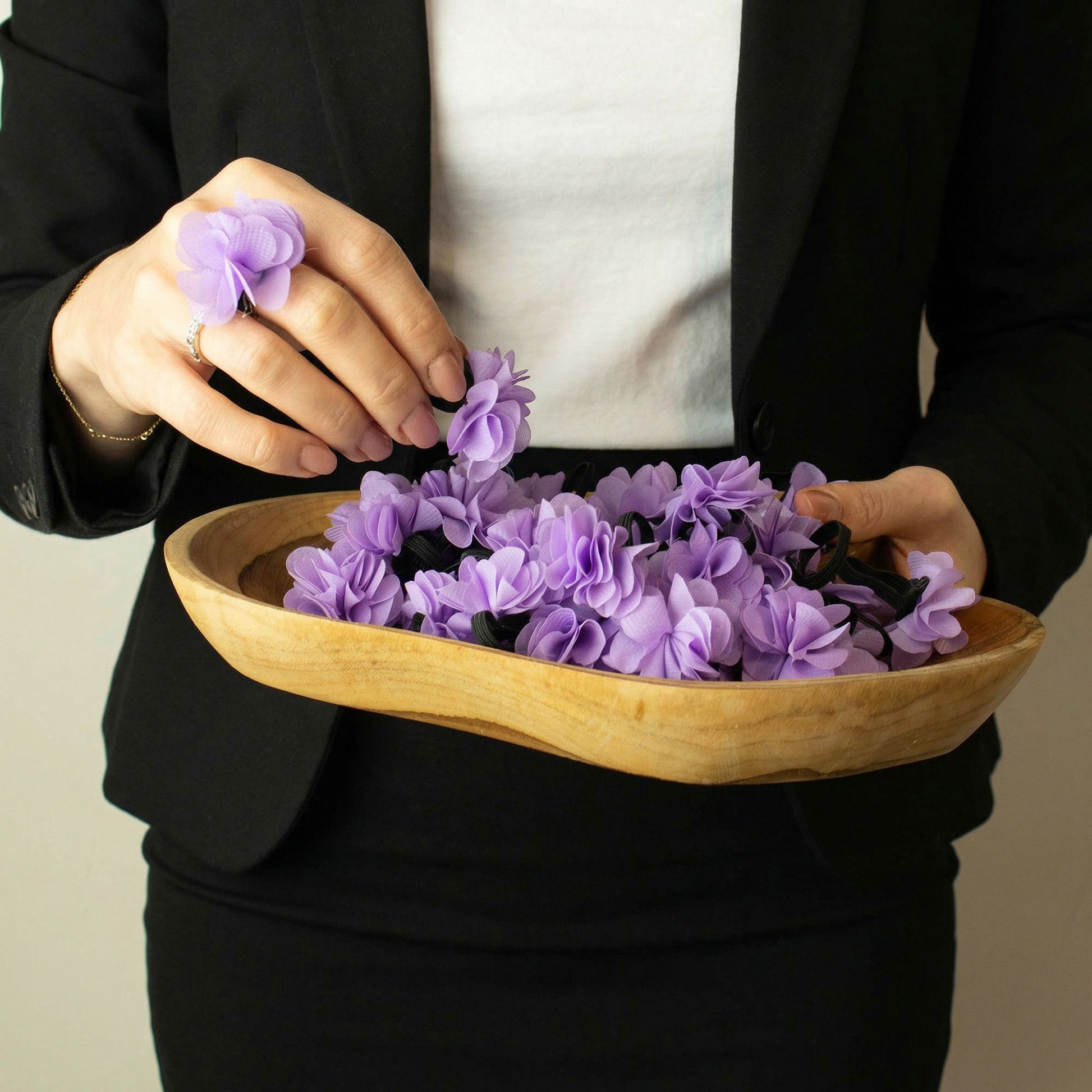 El diseño floral vibrante convierte el anillo en un accesorio divertido y en un probador de fragancias portátil. Su banda elástica ligera se adapta a la mayoría de tamaños de dedo, lo que facilita llevarlo para el estilo diario.