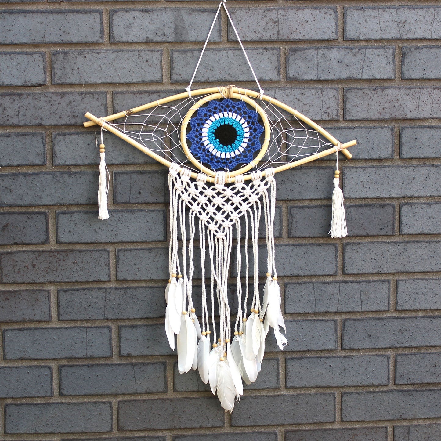 Découvrez l' attrape-rêves Mauvais Œil Bleu/Blanc/Noir - Macramé Moyen , une pièce de décoration unique alliant la beauté de l'art traditionnel à une touche moderne et mystique. Ce macramé méticuleux, disponible dans une palette de bleu, blanc et noir, embellira n'importe quel espace et lui insufflera une aura de protection et de paix.