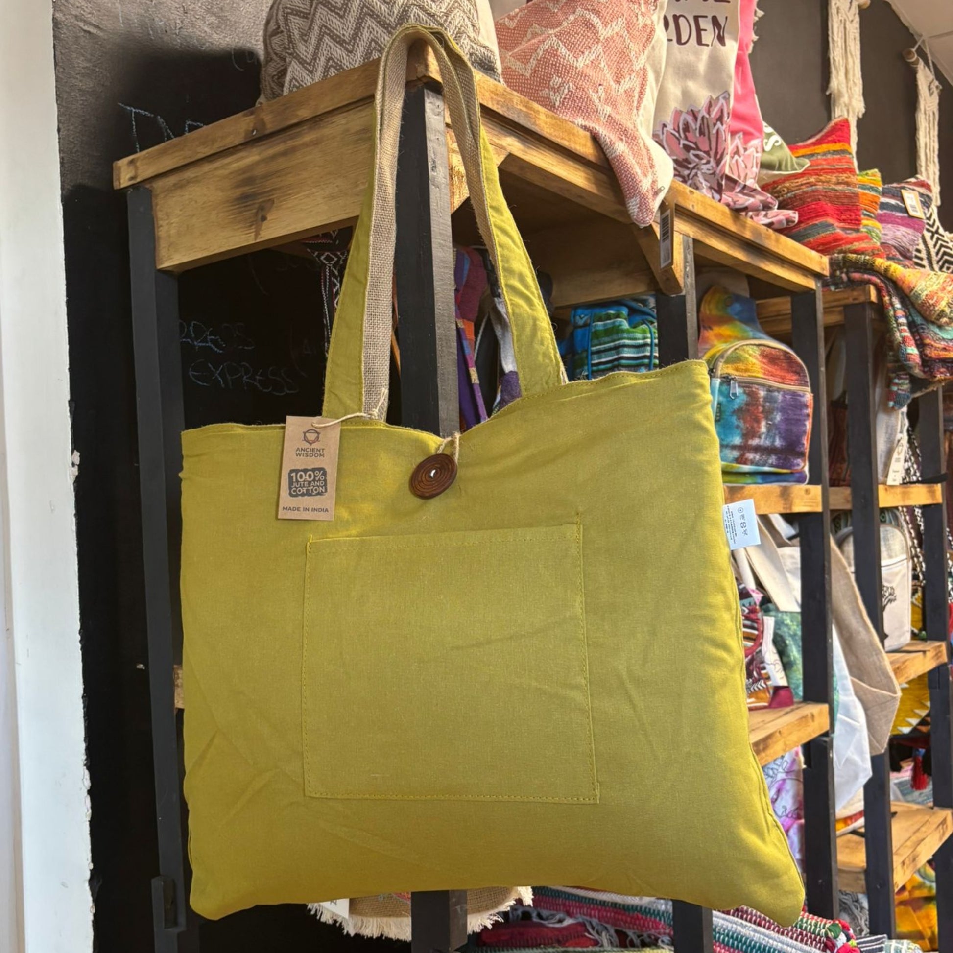 Grâce à sa conception réversible, ce sac vous offre deux finitions différentes : une teinte pistache vibrante grâce au coton de haute qualité, et une texture naturelle et rustique du jute. Grâce à cette polyvalence, le grand sac fourre-tout réversible en jute et coton – Pistache s'adapte à toutes les tenues et situations, d'une escapade d'un week-end à une virée au marché.