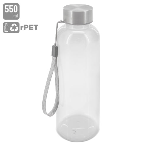 Bouteille de 550 ml, fabriquée en rPet issu de matériaux recyclés, selon une stratégie durable. Disponible en bleu, orange, bleu roi et transparent. Le rPet donne une nouvelle vie aux déchets solides, réduisant ainsi leur consommation et contribuant à la protection de l'environnement. Présentée dans une boîte individuelle décorée. Coffret de présentation inclus.