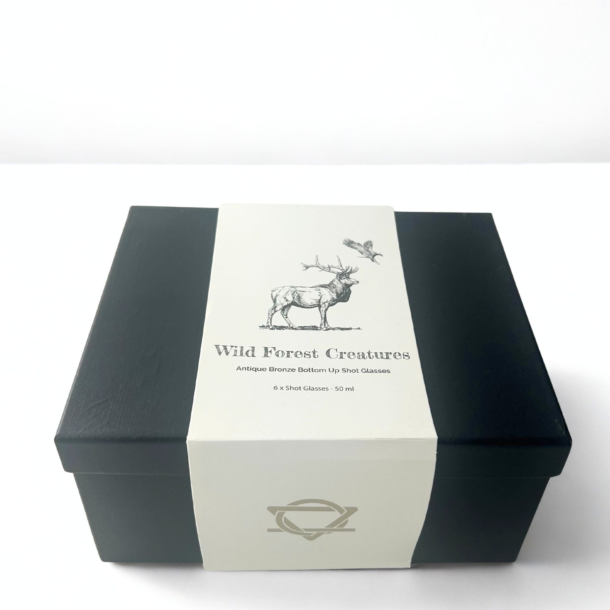 Juego de regalo de 6 vasos de chupito (50 ml) - Criaturas Salvajes del Bosque - Bronce Antiguo