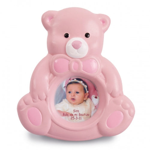 Cadre photo ours en peluche en céramique rose