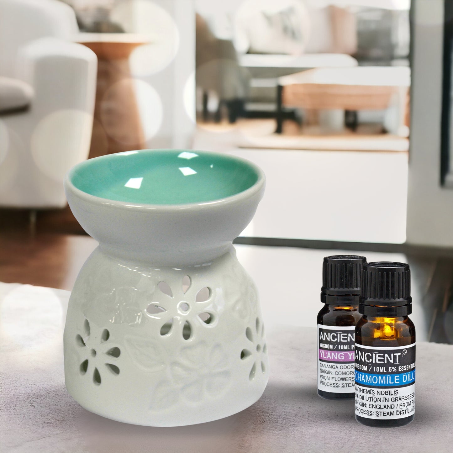 Brûleur à huile classique en céramique blanche. Ce brûleur à huile est fabriqué avec la meilleure céramique disponible, garantissant un haut niveau de qualité. De par leur qualité et leur prix, ces brûleurs à huile sont une excellente idée cadeau pour toute occasion spéciale.