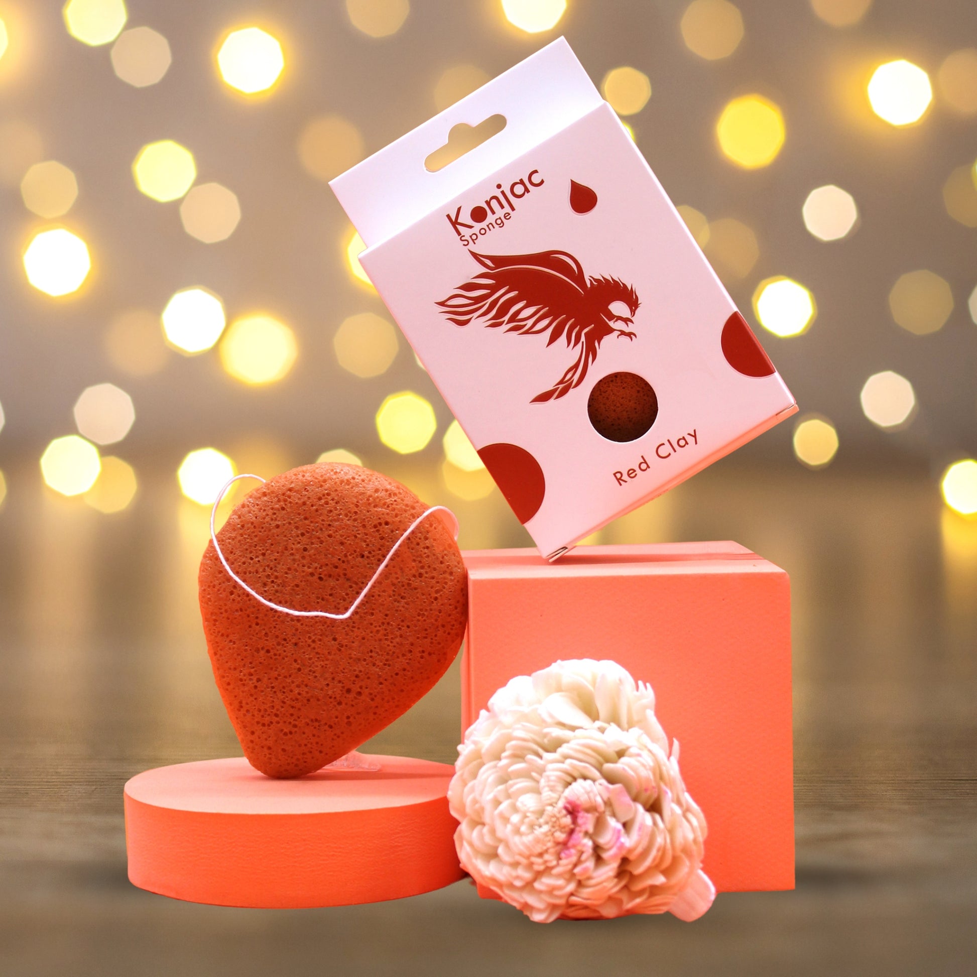 - Éponge visage Konjac à l'argile rouge : 100% naturelle et biodégradable, parfaite pour exfolier la peau en douceur, la laissant rajeunie et éclatante.