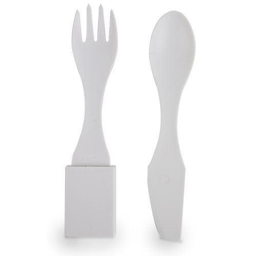 ARTICLE RÉUTILISABLE SANS BPA Comprend un couteau, une fourchette, une cuillère, une pince à salade et un ouvre-boîte